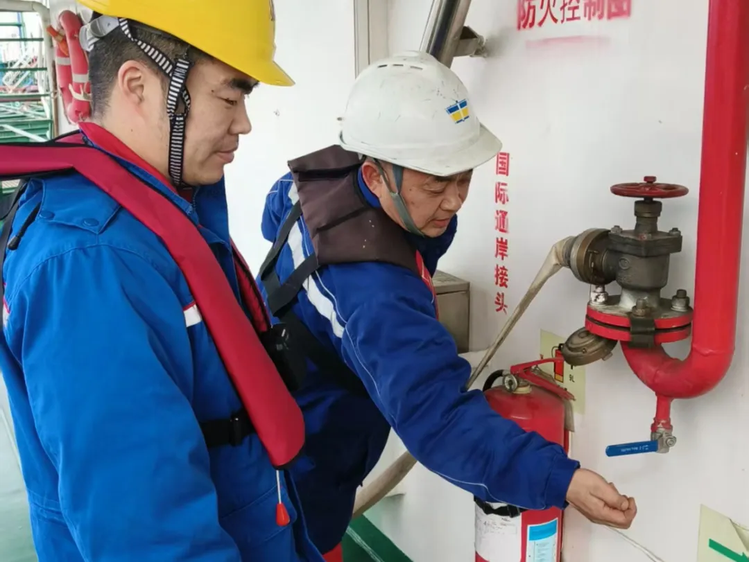 检查了船务公司对船员开展的冬季安全操作培训记录,强调了低温、结冰、干燥等特殊条件下的作业规范与防静电安全要求;核查了船员对相关应急预案的熟悉程度,确保其在紧急情况下能迅速响应。