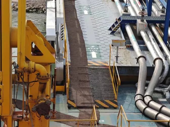 重点检查船舶甲板、楼梯、过道等易滑区域规范铺设防滑草垫,降低了船员与作业人员滑倒摔伤的风险。