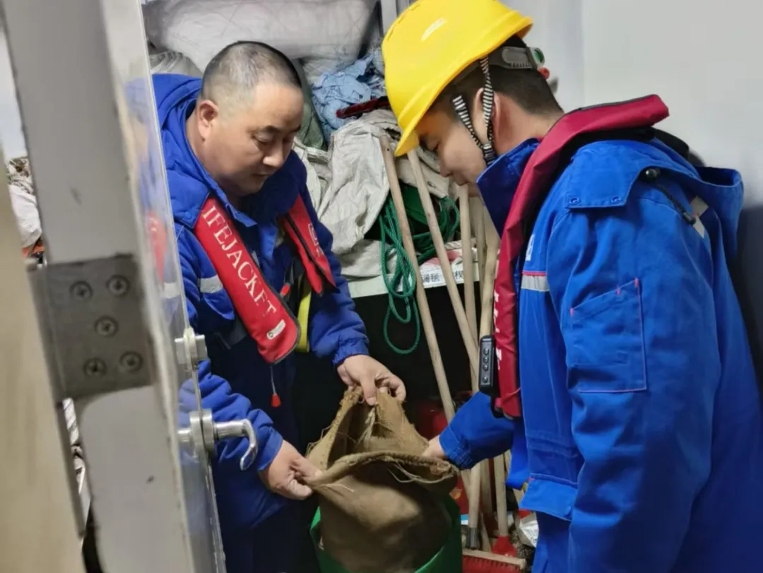 重点检查了船舶的消防设备、救生设备、导航设备等的完好有效性;确认了甲板及关键通道的防滑措施是否到位,是否及时清除积雪积冰;特别对甲板消防水管进行了放空处理,并对淡水管进行了防冻包扎,防止管线冻裂。同时,针对冬季干燥气候易产生静电积聚的风险,专项检查了船舶危险品作业区域、油舱甲板等关键部位的静电接地装置和消除设施,确保静电导出通路有效,从源头上预防因静电引发火灾、爆炸等安全事故。