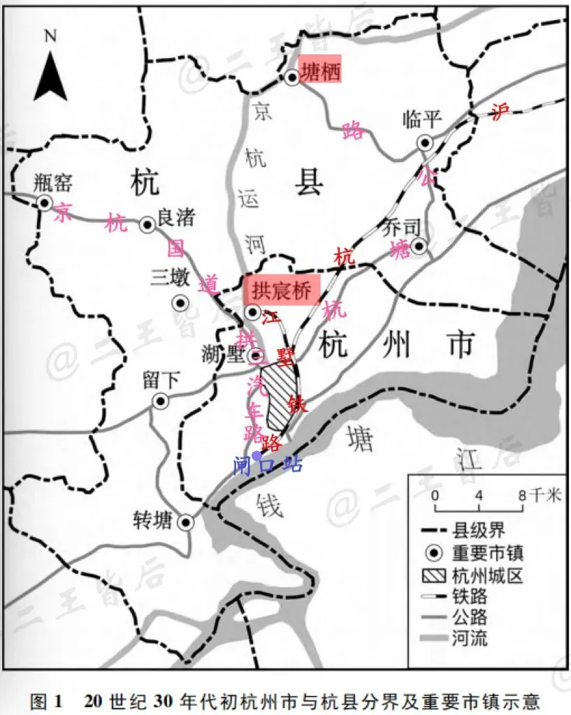 图自《争地设治: 民国时期杭县迁治研究(1927-1949)》(彩字为自行标注)