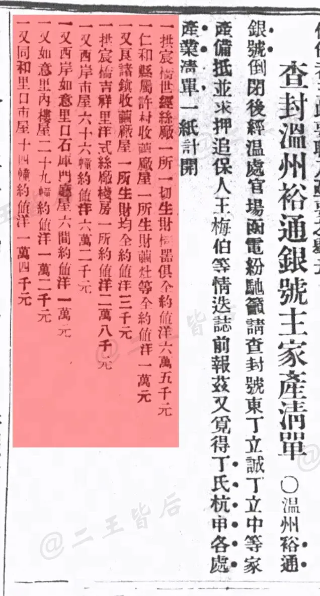 1899年丁丙逝世后,其子孙不愿接手,曾在报上连登一个月广告招租招盘,但从下文丁家温州银号破产后查封的财产清单来看,此厂无人接手。