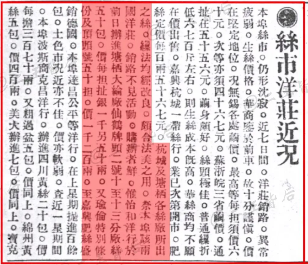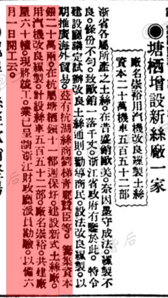 也是在1895年,庞元济与丁丙合资在拱宸桥如意里(见上文地图)筹建世经缫丝厂——浙江省第一家机械缫丝厂。