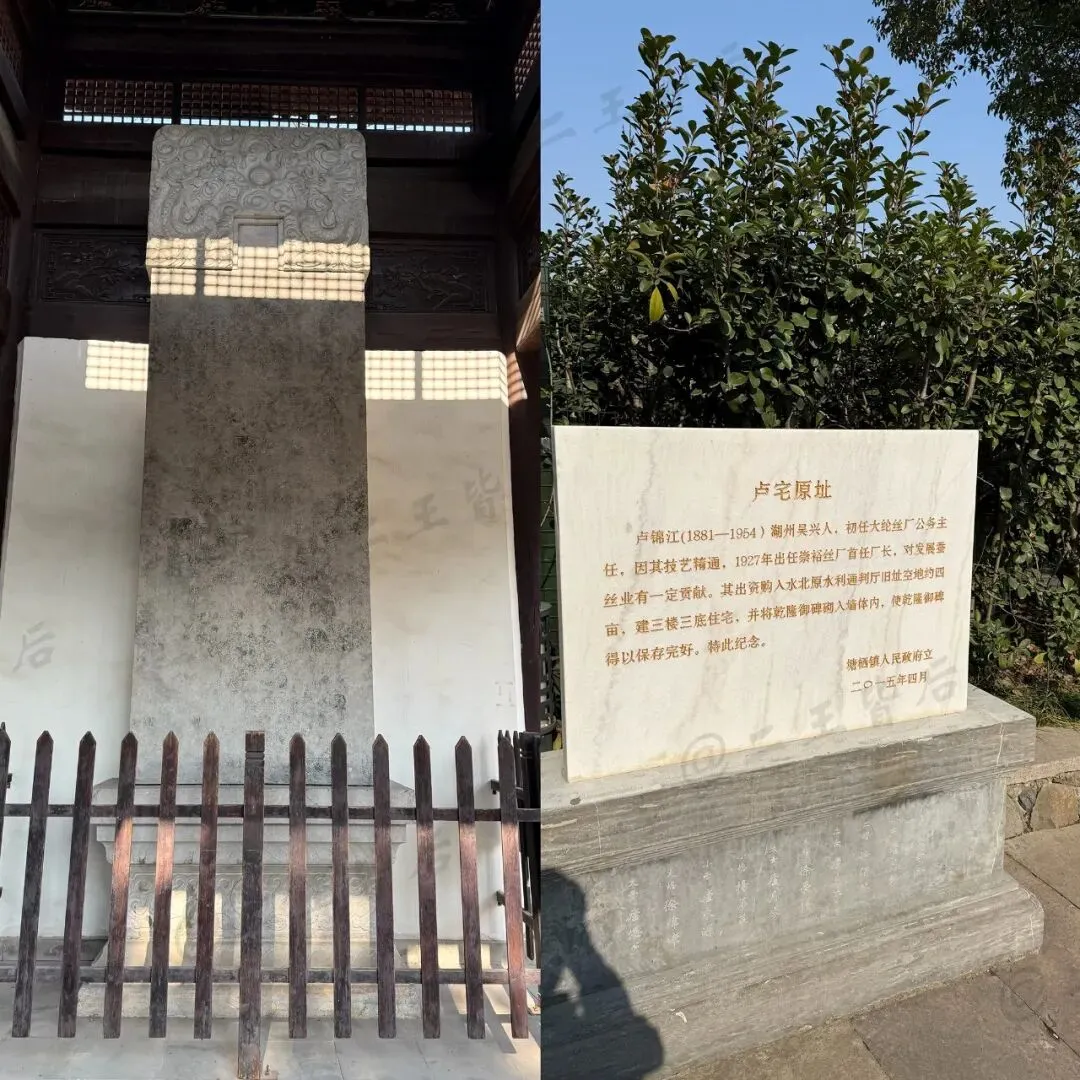 值得一提的是,1928年,庞元济的堂弟庞元浩(字赞臣)与人合资在大纶丝厂附近创办崇裕丝厂,这就是大名鼎鼎的新华丝厂前身。崇裕丝厂的首任厂长卢锦江原为大纶丝厂公务主任,如今塘栖古镇的乾隆御碑,便是因他当年砌入自家住宅墙体而得以保存完好。