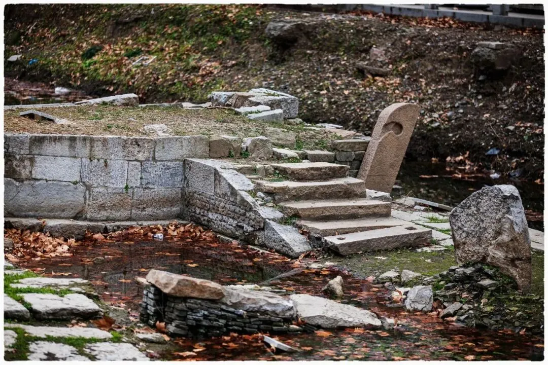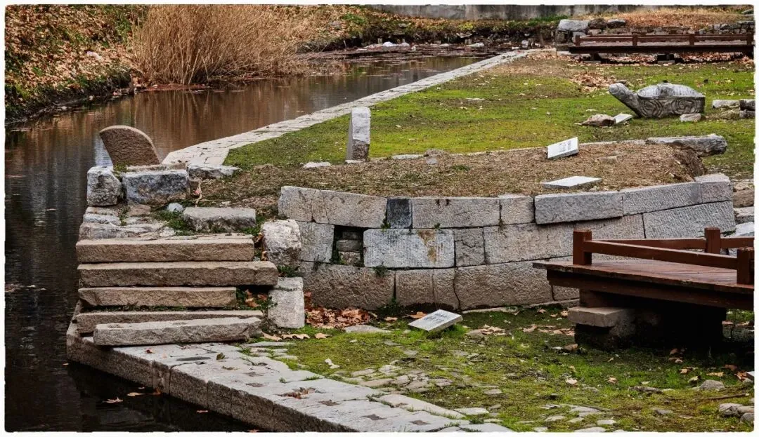 遗址广场开阔平坦,条石砌筑的闸墩脉络清晰,层层叠叠的石块,记录着唐、宋、明、清四代的变迁,像一部立体的水利史书,让人一眼望穿千年。北宋的木构痕迹、南宋的乱石墙基、明清规整的长条石,清晰可辨,站在闸墩旁,仿佛能看到当年“舳舻千里,帆樯蔽日”的漕运盛景,南来北往的漕船在此过闸,船工的号子声、商贩的吆喝声、水流的潺潺声,交织成最热闹的市井乐章。