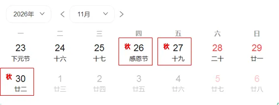 关于秋假,江苏一地明确:秋假定于11月14日至11月18日!,但是南通明确,秋假与双休日连休,共5天,具体时间为11月26日-30日(其中28日-29日为双休日)。所以,我们南京秋假应该是这两个时间段。