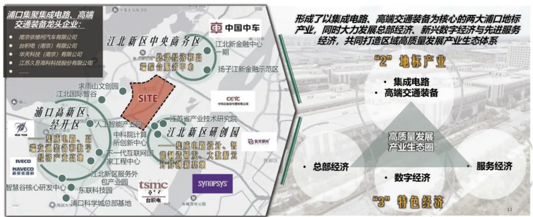 周边聚集江北新区中央商务区(总部经济+科技金融+高端服务业)、江北新区研创园(创新研发+产业孵化高地)、浦口高新区(先进制造业基地)、浦口开发区(先进制造业基地)4大产业板块,可承接4大产业板块辐射利好。