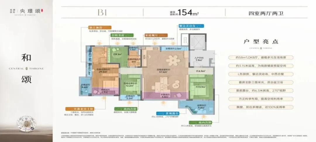 项目是浦口首个第四代住宅,定位纯改善,以建面约133㎡三房两厅两卫和建面约154㎡四房两厅两卫为主,层高约3.15米,户户拥享私家花园庭院,实得率接近100%。