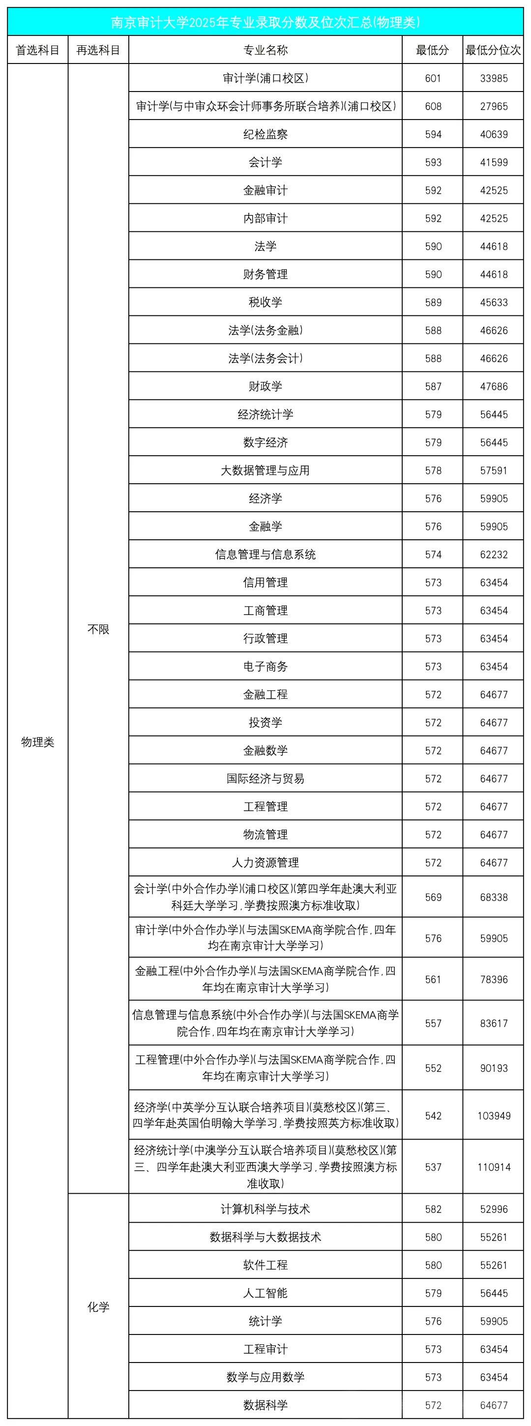 南京审计大学2025专业录取分出炉!最高608分,王牌专业是?