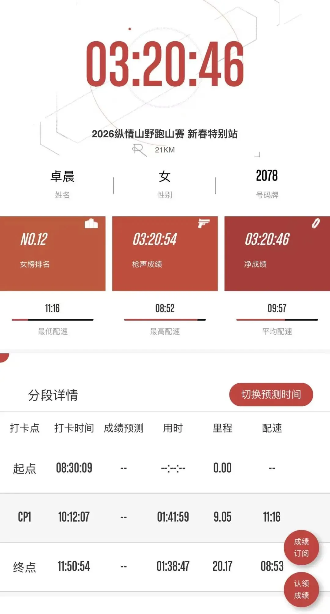 最后成绩出来了,女子12,林大哥团队一个姓潘的女生站台了,女子第三,正好3小时。