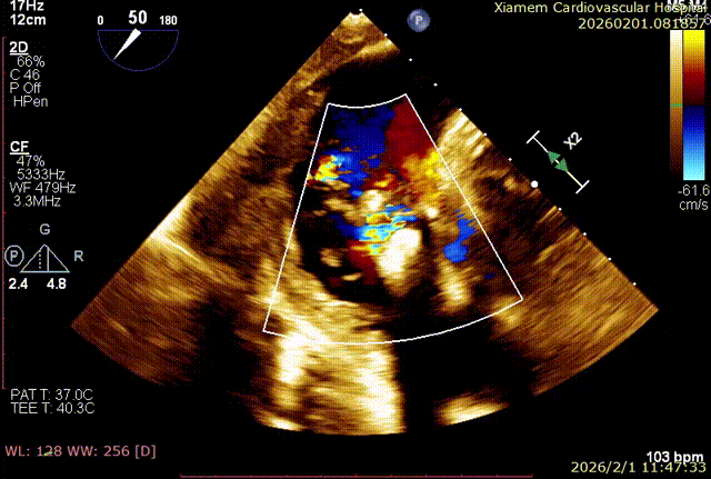 手术团队凭借扎实的临床经验与精湛的操作技巧,成功应对瓣叶解剖复杂、反流区域广泛等挑战,通过合理部署两枚瓣膜夹,将三尖瓣反流从极重度降至轻中度,充分验证了一站式联合手术方案在复杂瓣膜病合并肺动脉高压患者中的应用价值。