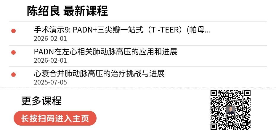 该病例体现了肺动脉高压与三尖瓣反流相互加剧的临床困境:肺动脉高压增加右心负荷导致三尖瓣反流加重,而严重三尖瓣反流又会加剧右心衰与全身淤血,使肺动脉高压治疗更为棘手。传统单独处理任一病变均可能受限。本次一站式PADN+T-TEER 手术,旨在通过同期降低肺血管阻力与纠正三尖瓣反流,一次性打破这一恶性循环,实现“一次手术、双病同治” 的治疗目标。PADN 有效降低患者肺动脉压力,减轻右心后负荷,为 T-TEER 创造了更安全的手术条件;T-TEER 术则精准改善三尖瓣反流问题,二者协同作用,显著降低了患者右心失代偿风险,为探索此类复杂疾病的综合治疗提供了前沿范例。