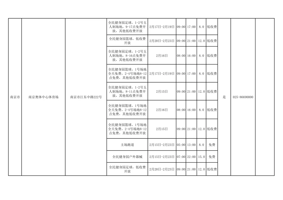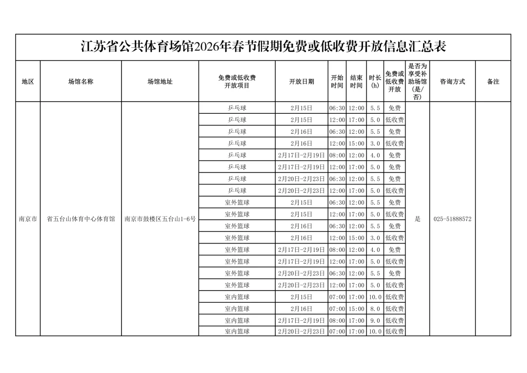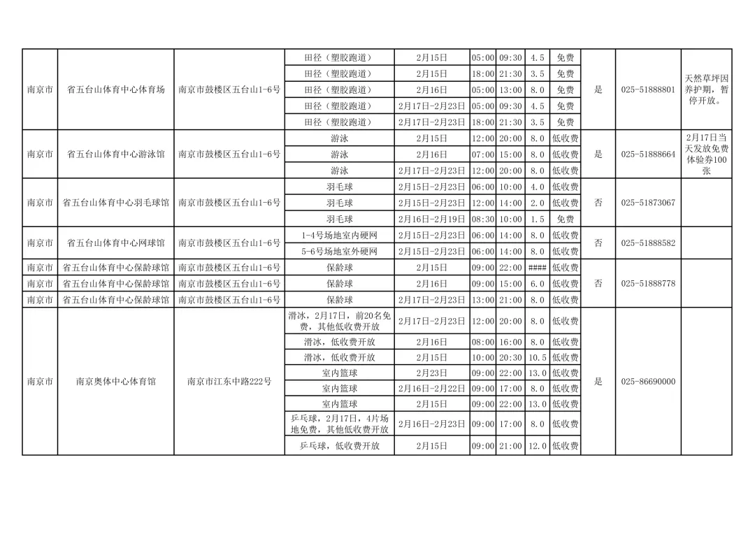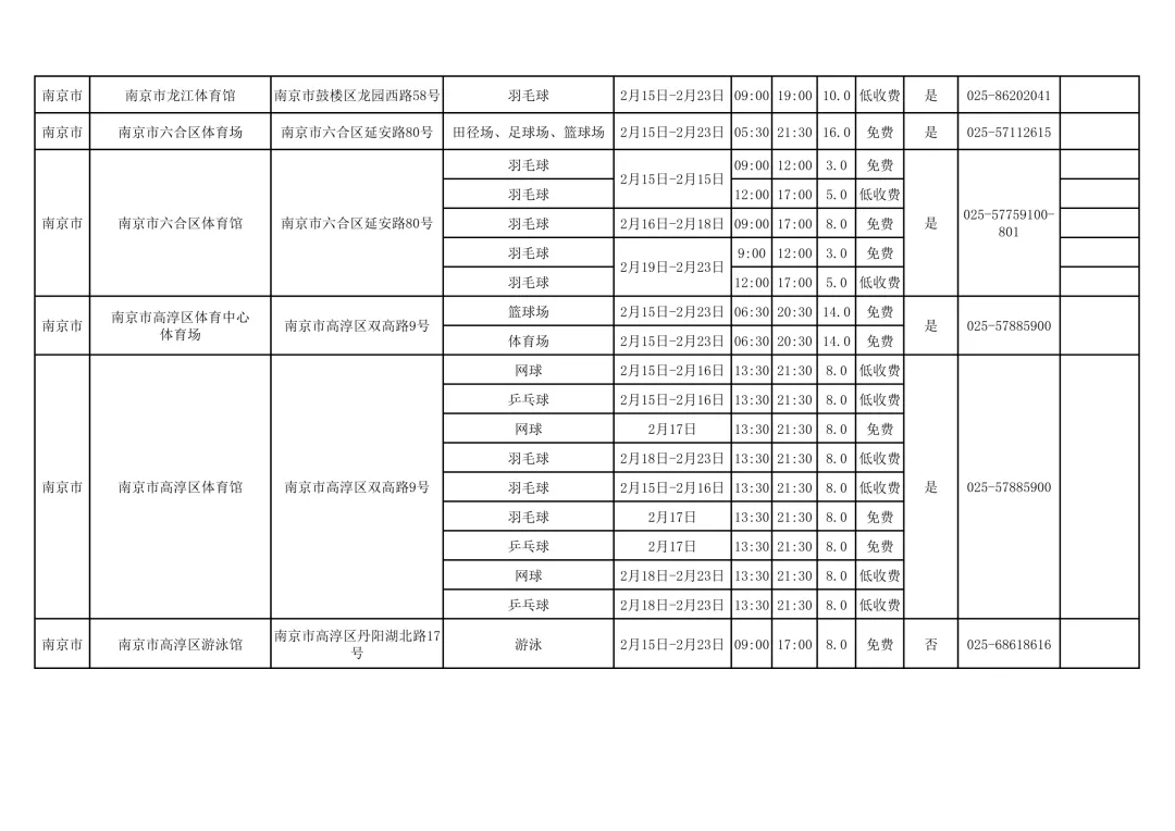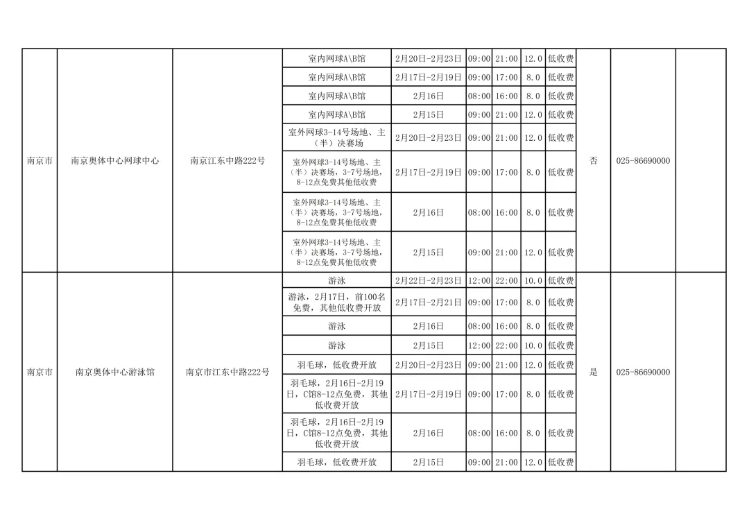 江苏多家公共体育场馆