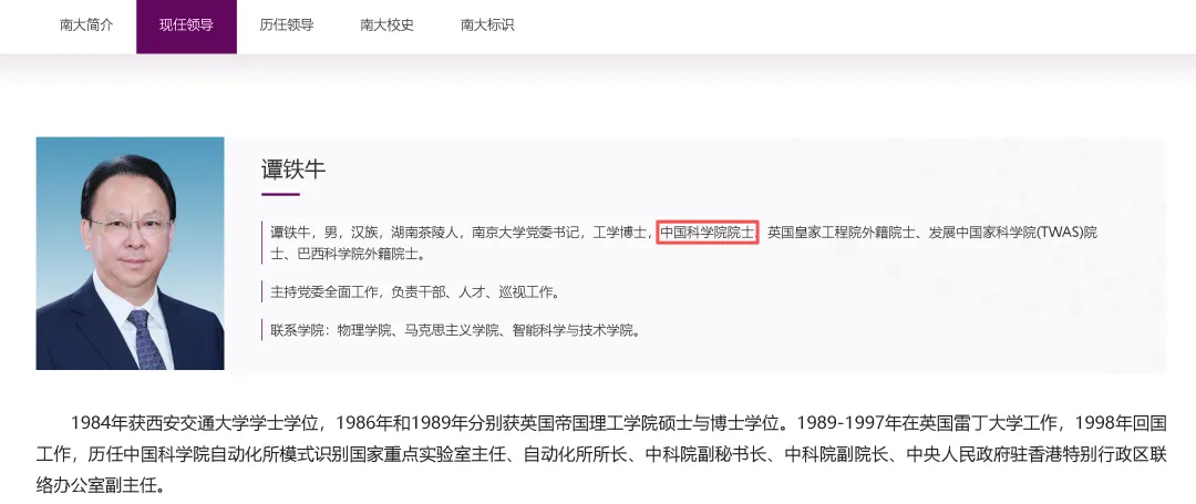 四位院士学科布局清晰、优势突出,其中校长谈哲敏院士为理科背景,党委书记谭铁牛院士、常务副校长郑海荣院士、副校长周志华院士均为信息学科领域顶尖学者,这一配置清晰传递出战略信号:南京大学正全力推动理工科高质量发展,尤其重点布局计算机、人工智能、信息技术等新一代信息学科,以顶尖院士团队引领学科升级与创新突破。