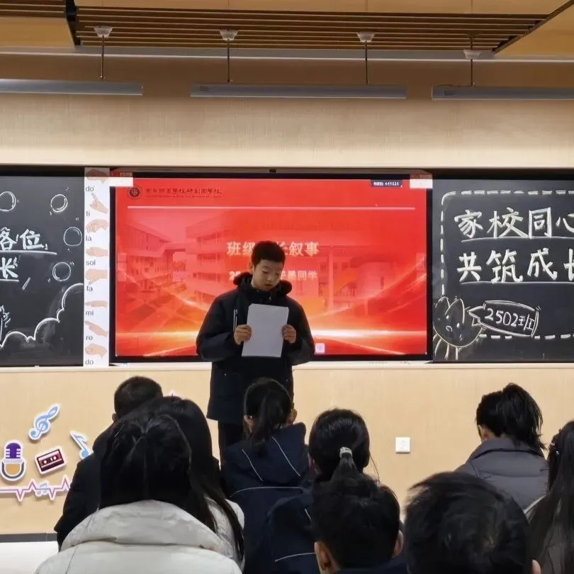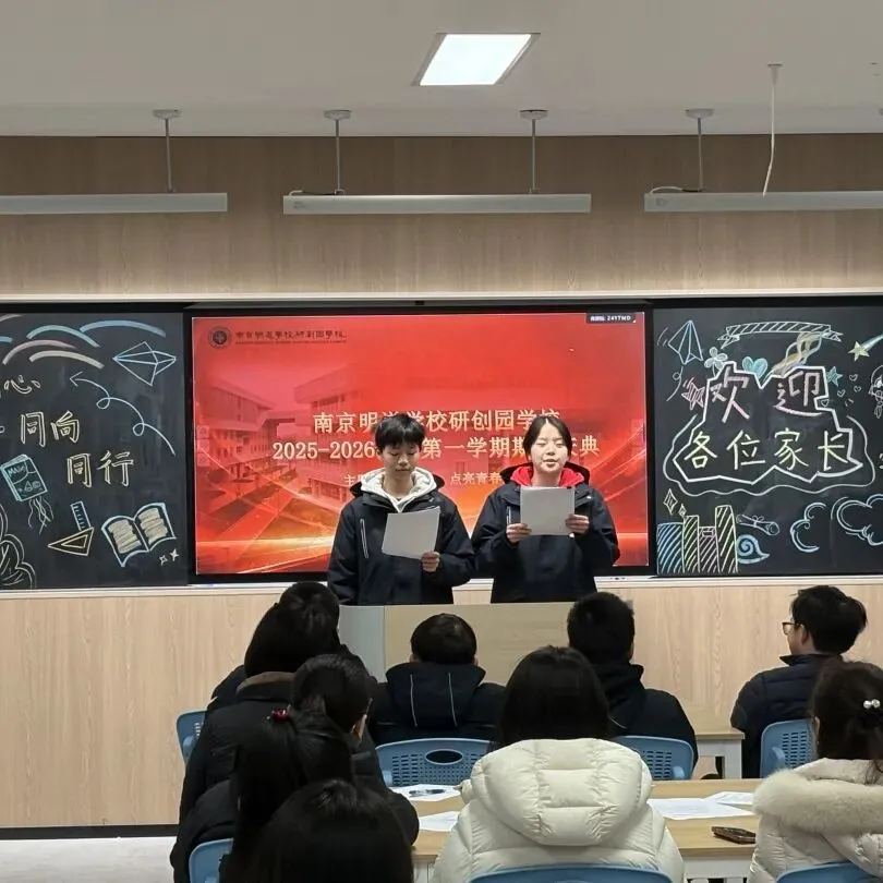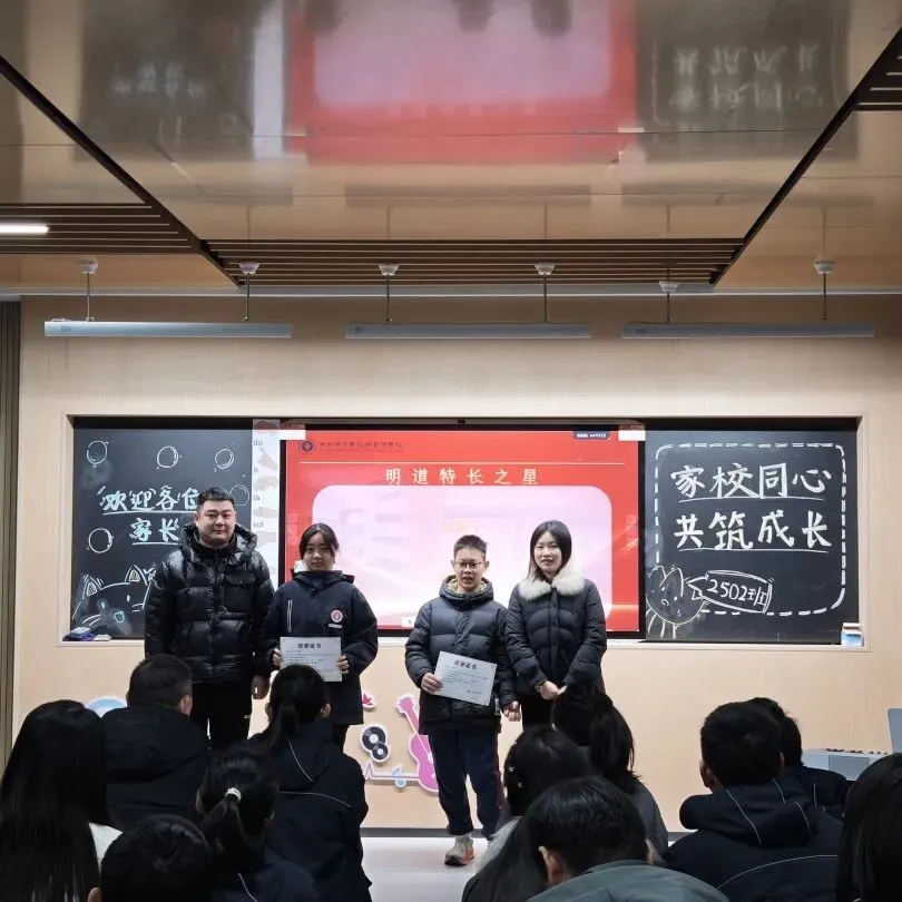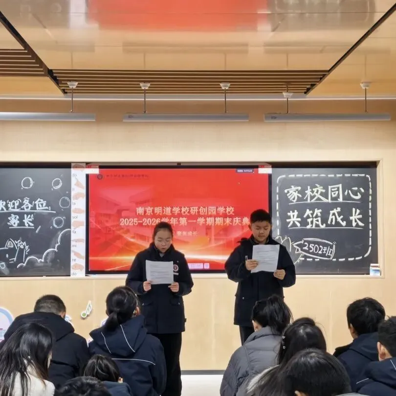 以成长之名,赴冬日之约;以教育为契,聚家校之力。2026年2月6日,南京明道学校研创园学校初一年级期末庆典暨家长会温情启幕。本次活动以班级为单位,由各班主任独立主持、精心统筹,各班紧扣“成长叙事、成长颁奖、成长规划”核心主线,将仪式感与教育温度融入每一个细节,让各位家长沉浸式见证孩子一学期的蜕变与成长,共话育儿良方、共凝教育合力,为孩子们的初中成长之路保驾护航。