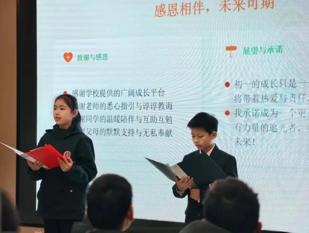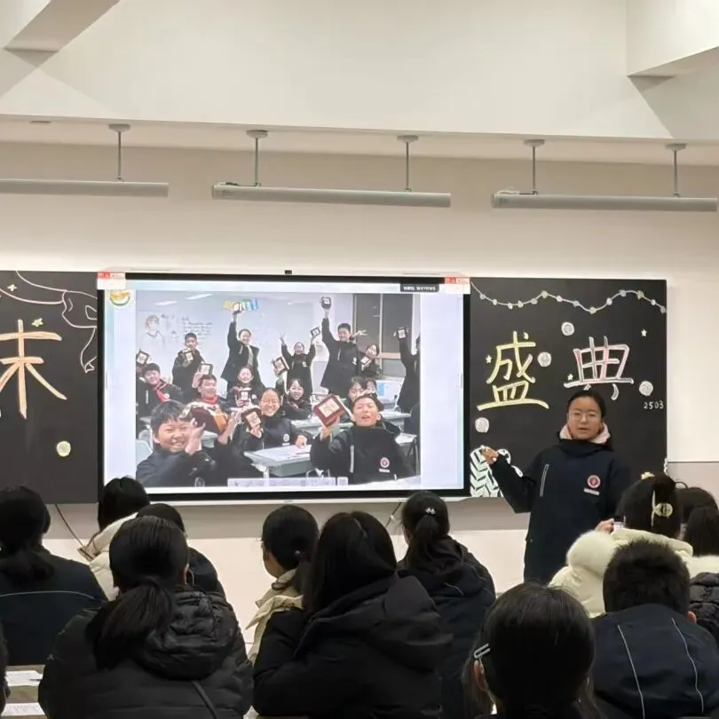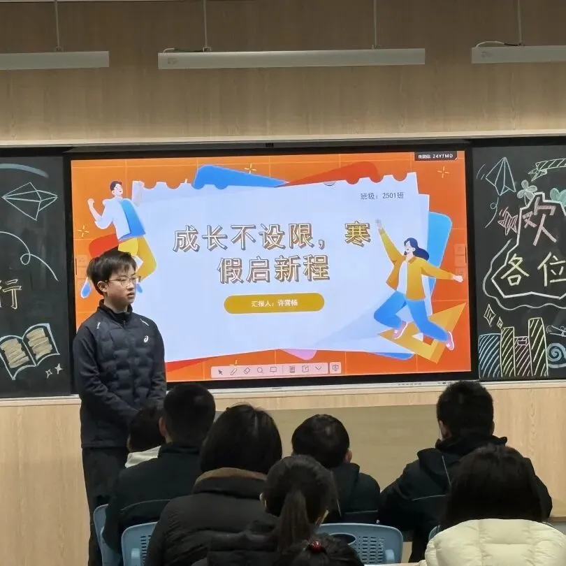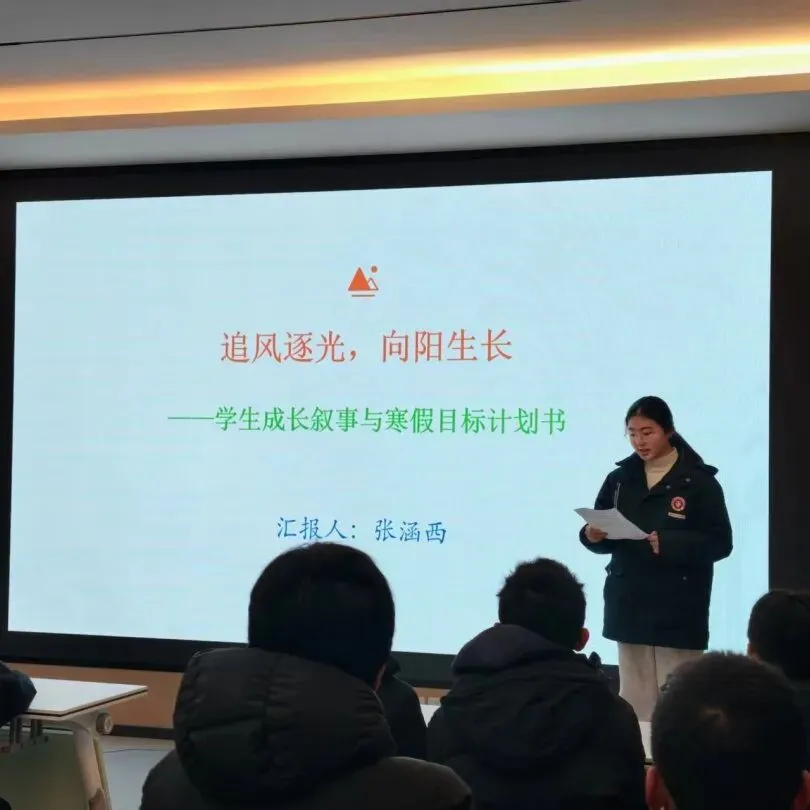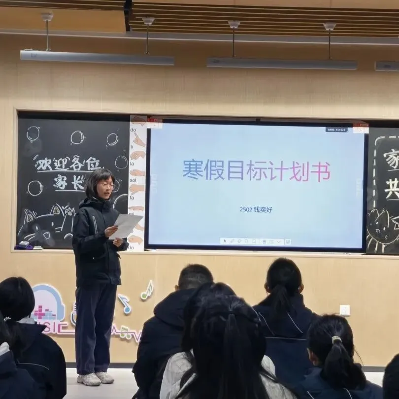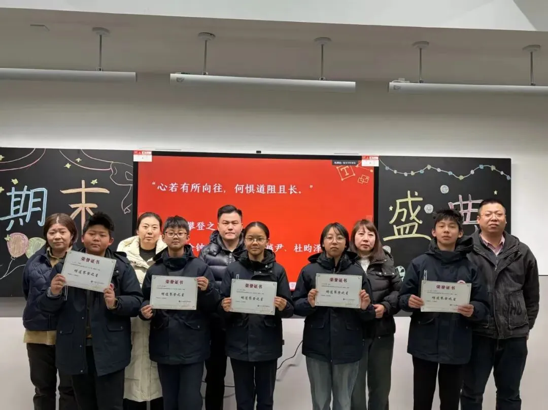 颁奖典礼上,家长嘉宾亲手为获奖孩子送上奖状与肯定,学生原创的颁奖词饱含赞美与期许,让每一份努力都被看见、被珍视。随后的寒假规划分享中,学生代表清晰阐述了贴合SMART原则的假期计划,一言一行间,尽显自主学习的意识与成长的底气。
