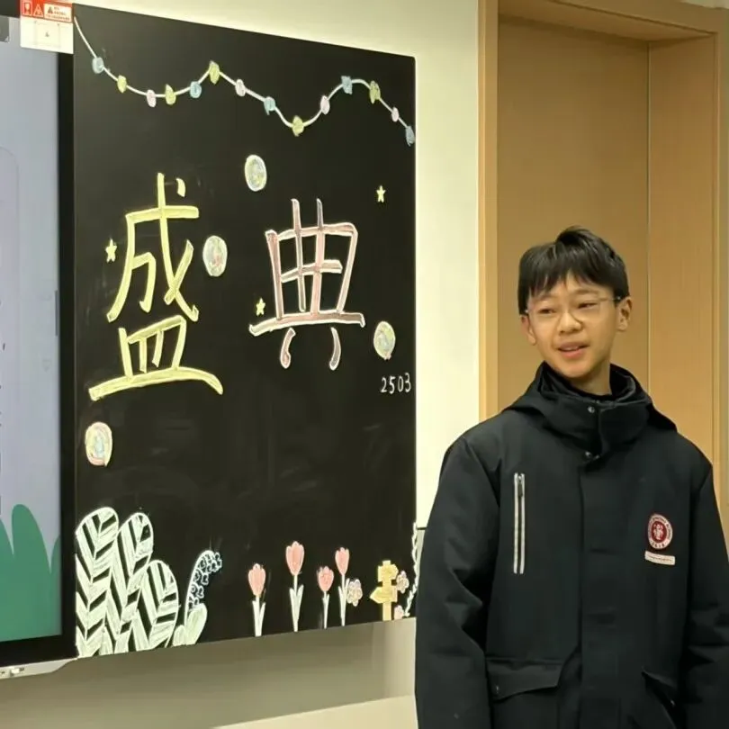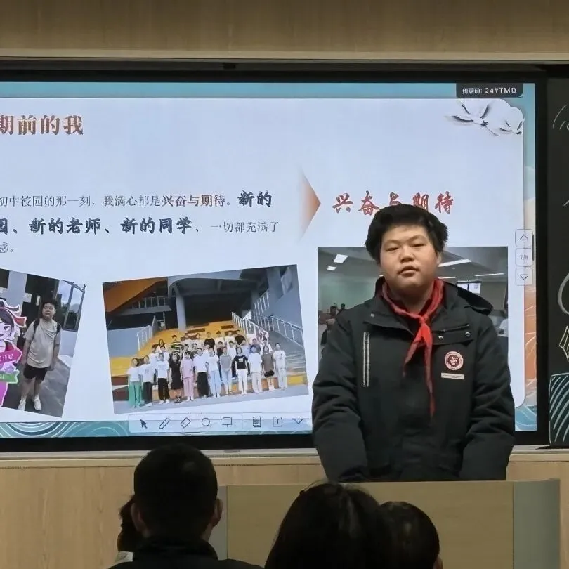 2503班的庆典,处处洋溢着少年人的活力与朝气。学生主持人热情满满地开启整场活动,清脆有力的话语瞬间点燃现场氛围。成长叙事环节,学生代表元气十足地登台,分享了自己在课堂上的积极探索、课后的努力奋进,以及与同学间的互帮互助,每一个成长故事,都彰显着初一学子的青春风采与蓬勃朝气。班主任以轻松活泼的方式,带领家长“云逛”孩子的校园日常,家长代表也以充满活力的姿态分享育儿经验,传递满满正能量。