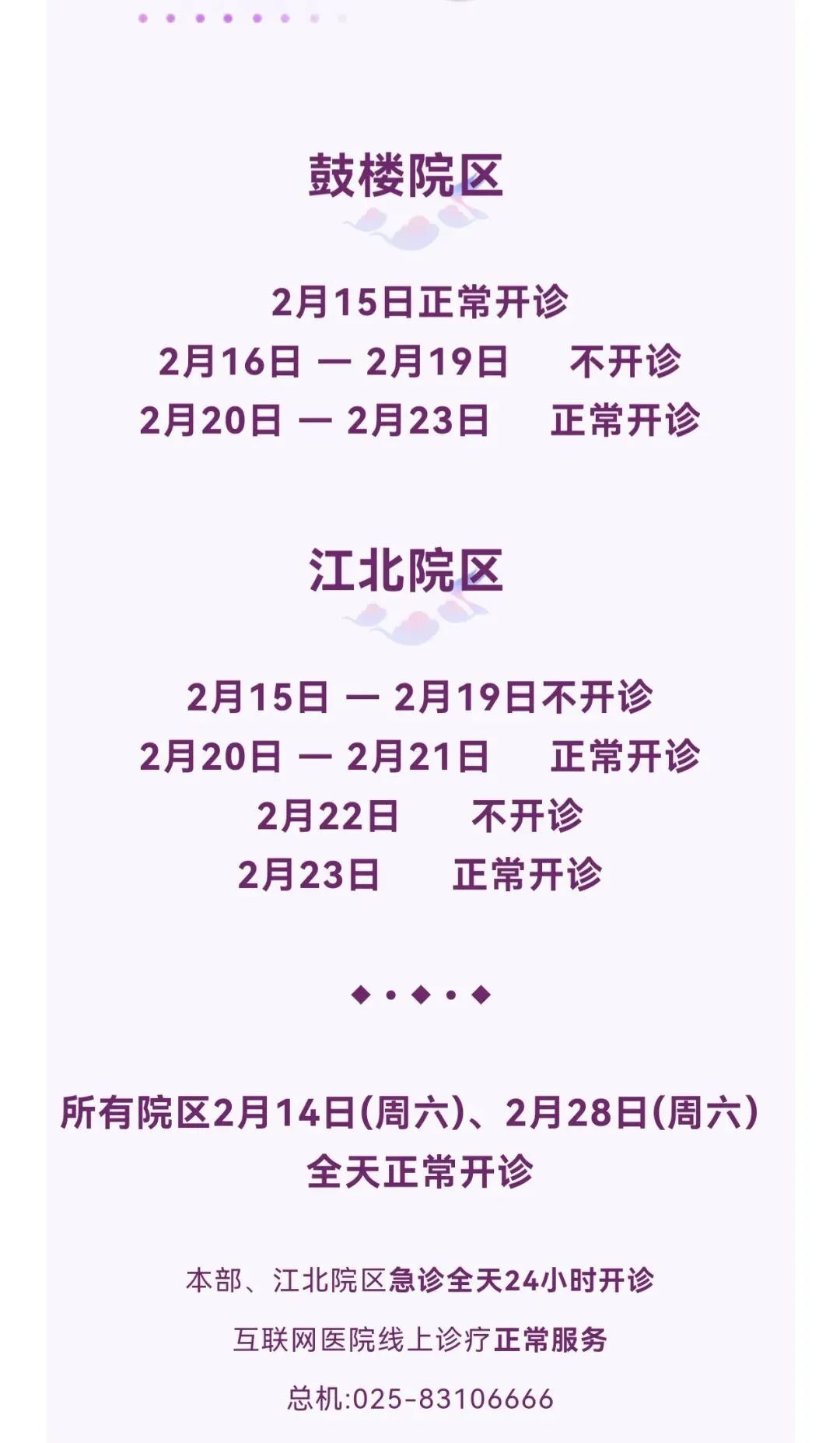 >南京鼓楼医院春节门诊安排