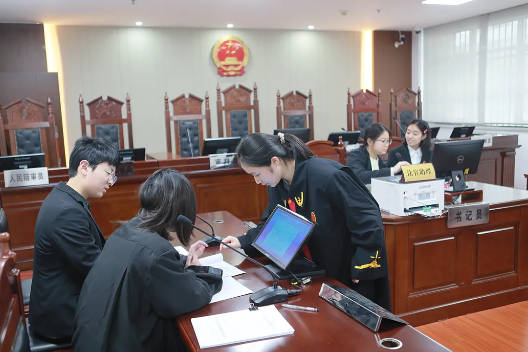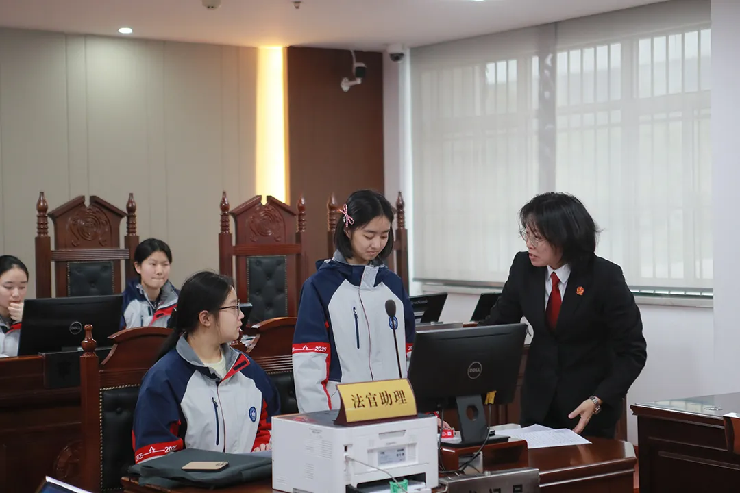 模拟庭审现场中,同学们迅速进入角色:书记员宣读法庭纪律,审判长有序组织法庭调查、举证质证、法庭辩论、最后陈述等环节,当事人及代理人围绕案件事实发表意见,证人如实描述其见证的事实,一切皆严格依照规范庭审程序有条不紊地排练推进。模拟庭审结束后,法官对同学们的表现表示肯定,并对庭审中出现的问题进行点评,以实景化、互动式体验为学生们上了一堂生动深刻的法治实践课。