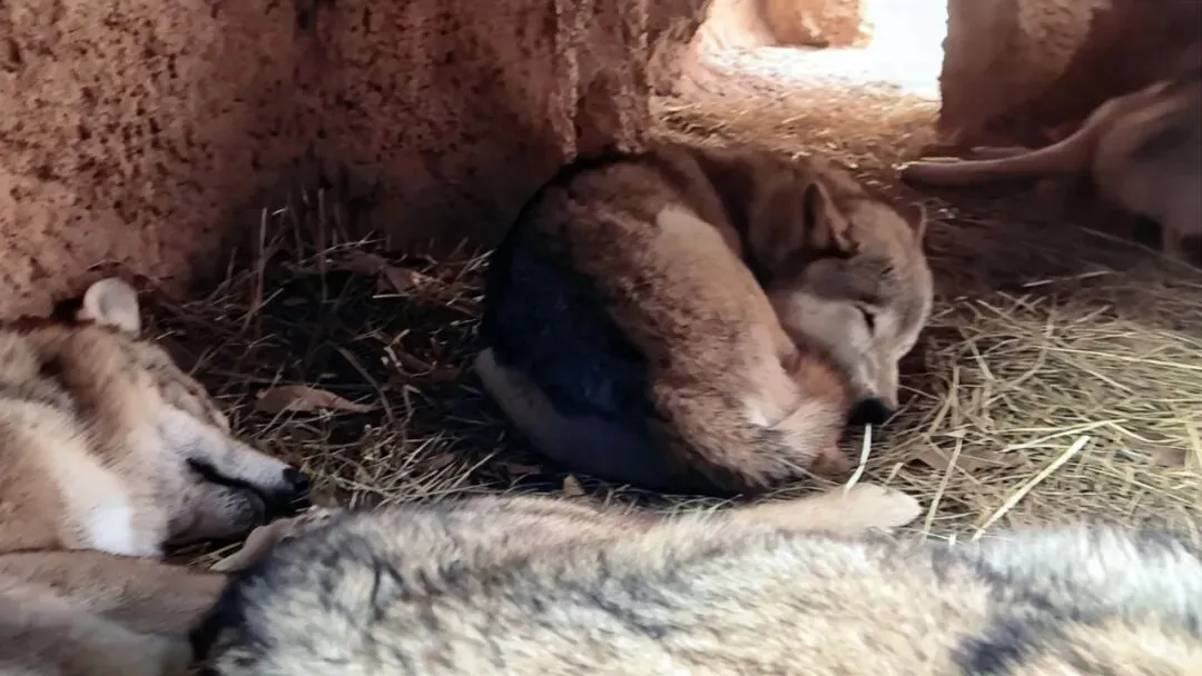 果然,四匹狼像大狗一样围成圈圈睡在洞里,舒服极了,人们自觉排成队,依次蹲在小小的玻璃窗前,只为一睹其睡姿。
