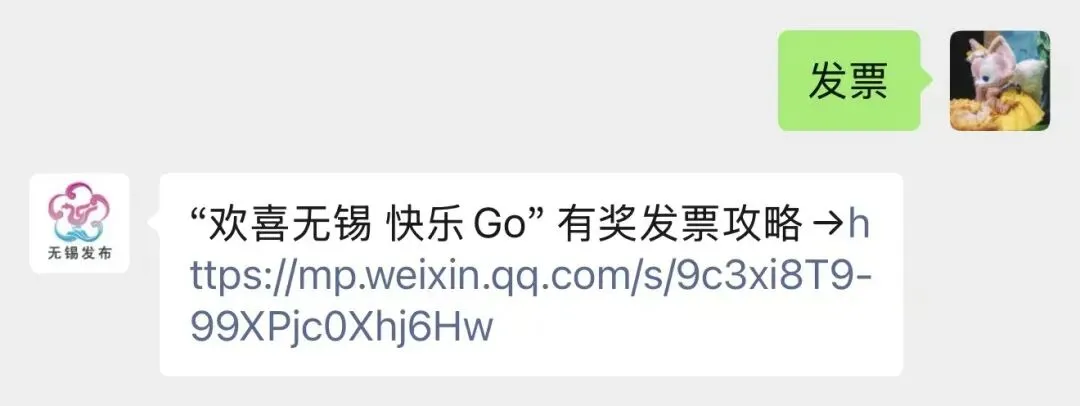 2. 在“无锡发布”微信公众号对话框