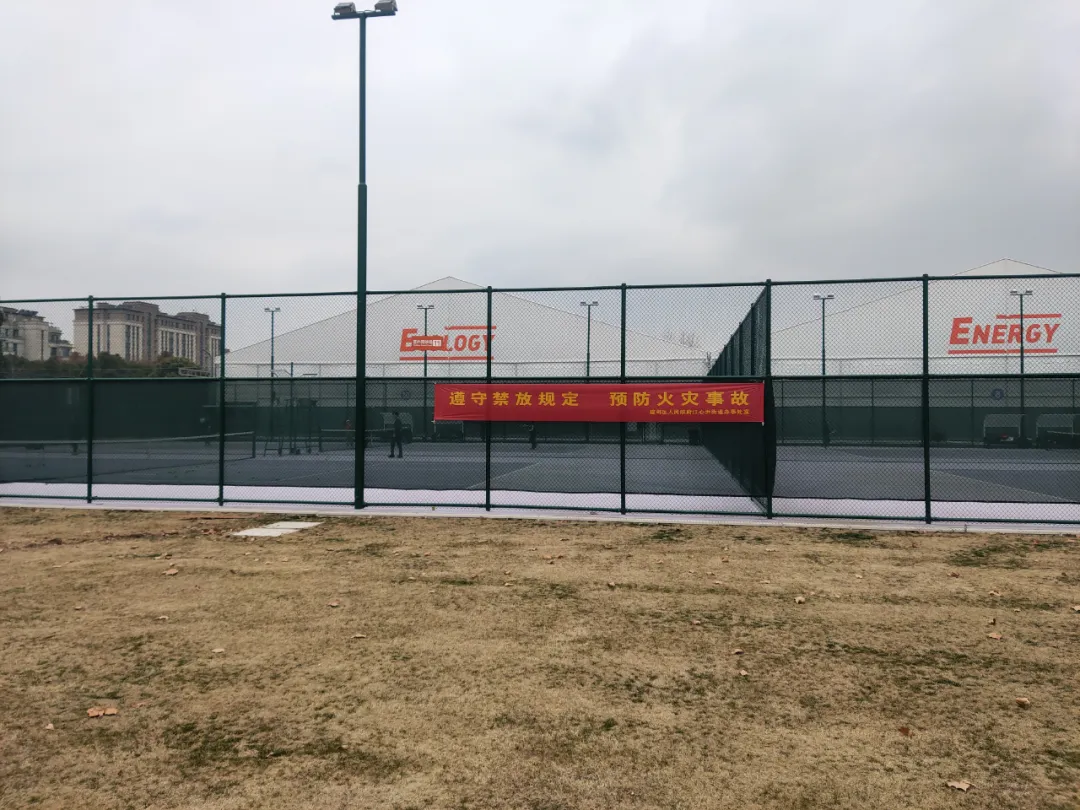网球场也有人一大早就开始了运动,儿童区更是聚集了不少的带娃家长。