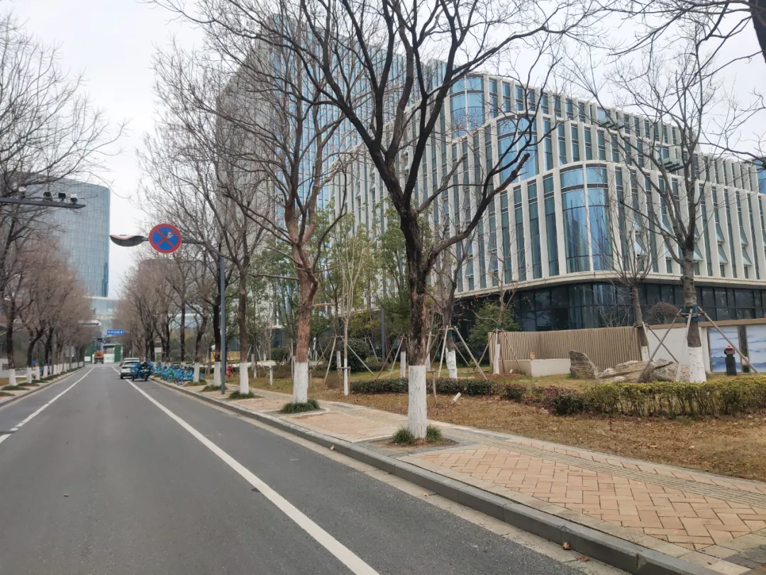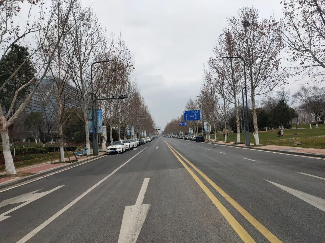 与江心洲其他干净的道路段相比,通往岛北E³PARK的环岛东路两侧也是停满了车辆,一直蔓延到江苏坚米智能有限公司这边。
