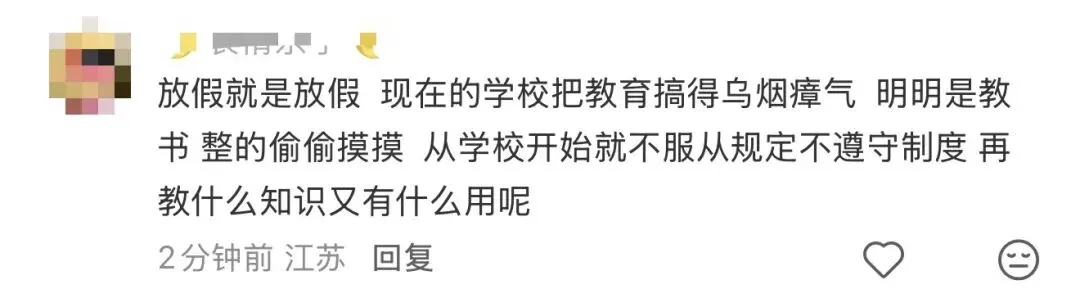 还有家长表示,学校就开始不服从规定,不遵守制度,再教什么知识有什么用?