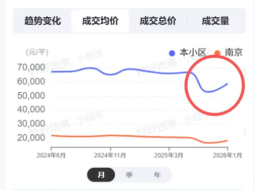 1月18日,鼓楼华侨路的牌楼巷卖出一套建面约63.22㎡房源,成交总价413万,算下来单价高达6.5万+/㎡。牌楼巷小区对应的“拉小+29中”的顶级双学区,此前最高成交单价约7.8万/㎡,还是2021年创造的。一是6.5万+/㎡的成交价,创下小区近3年新高,而这3年刚好对应的是楼市调整期;二是这套房源成交周期仅24天,可见该小区房源非常抢手,目前在售的也只有4套。1月5日,匡庐新村卖出了一套建面约32.71㎡的小户型,总价212万,成交单价64812元/㎡。匡庐新村对应的是“力小+29中”顶级双学区,巅峰期有过12万/㎡的成交,但那是6年前的事了。去年11月小区成交了一套5.2万/㎡的房源,对比之下现在价格又反弹了一些,基本上回到了去年初的水平。另外,像金鼎湾今朝天下这种兼具改善居住和顶级学区的房子,也依然有不错的成交。最近卖出一套,单价虽不及高峰期,但总价1288万,依旧说明“好房子+好学区”的超级吸引力。不仅是部分学区房价格门槛在反弹,近期整体成交量也在猛涨!