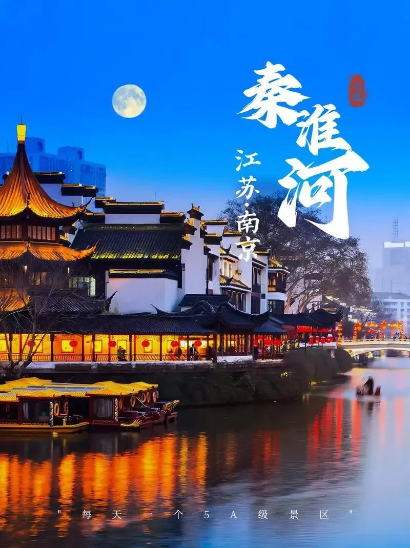 桨声灯影里的十里秦淮,这条流淌了几千年的蔷薇色河流,像玉带婉转,沉静优美。她见过六朝的莺歌燕舞,也见证了南京的兴衰荣辱。