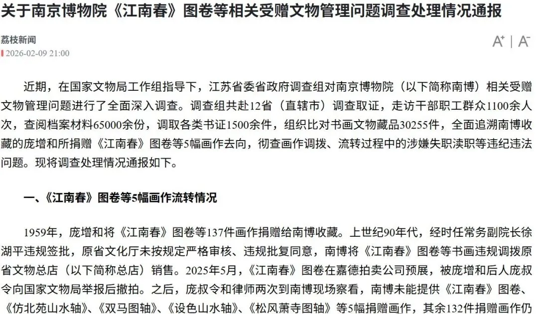 也就是说,《江南春》及其他几幅庞家捐赠名画,通过“协商移交”,又回到了南京博物院。