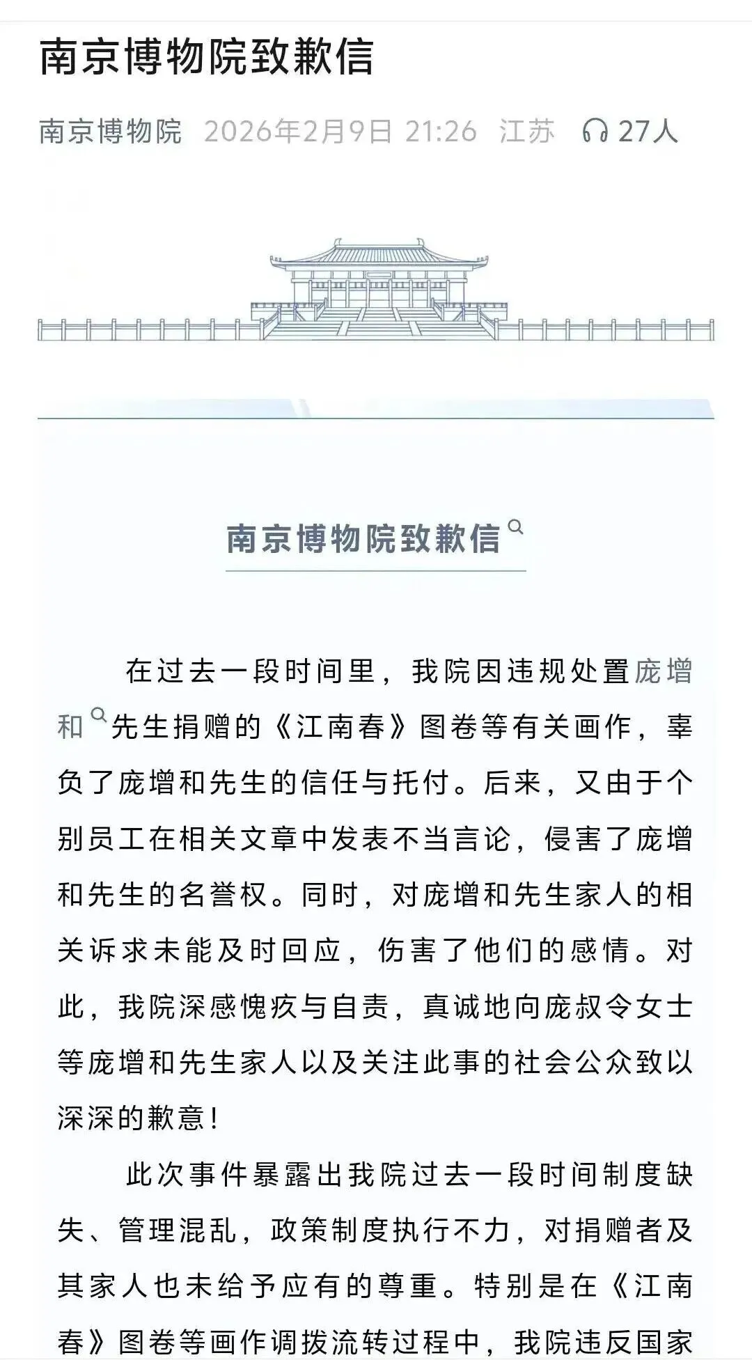 虽然南博在高压之下,写了一份公开致歉信。