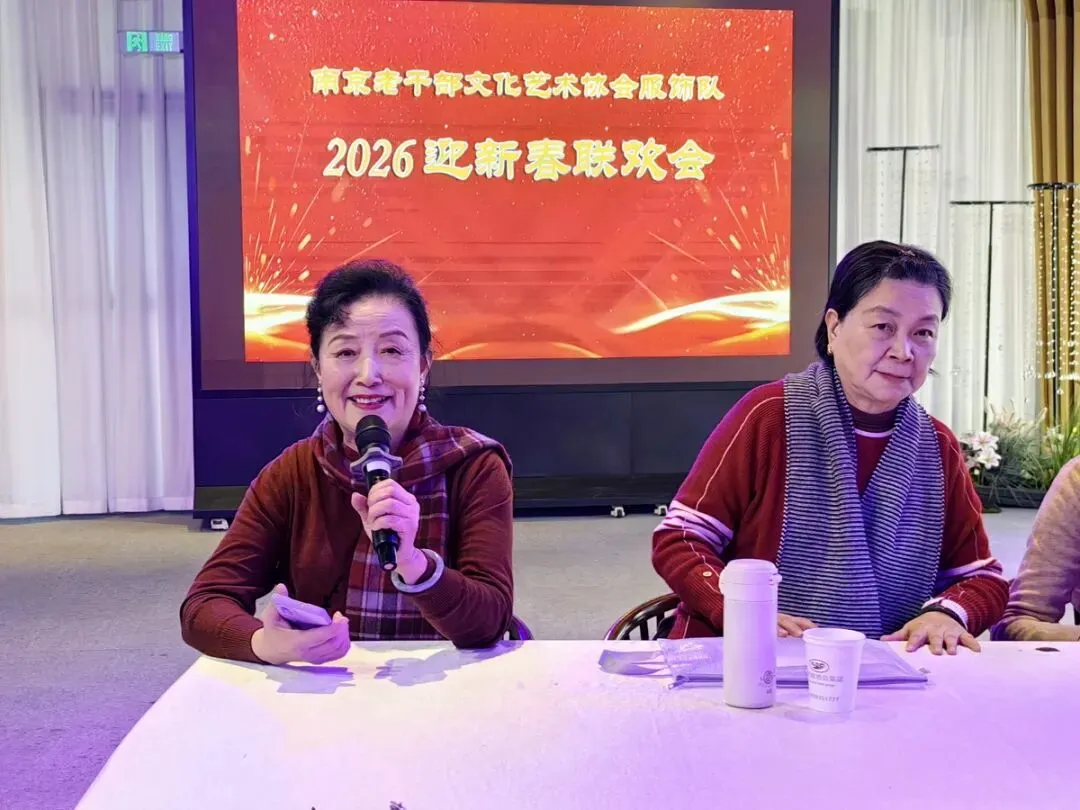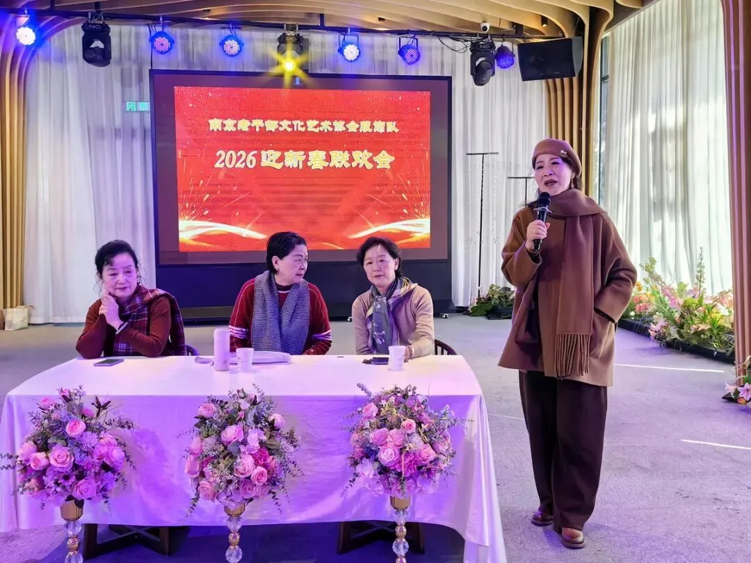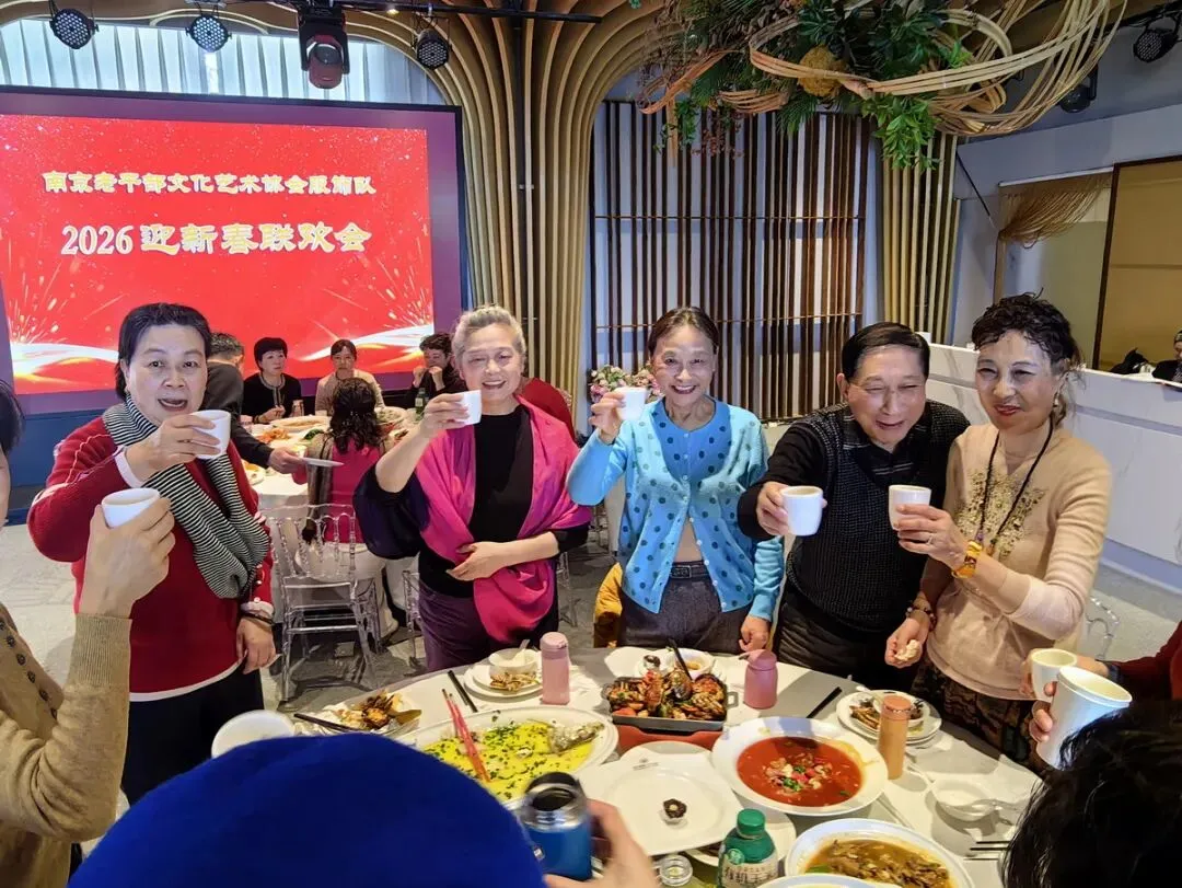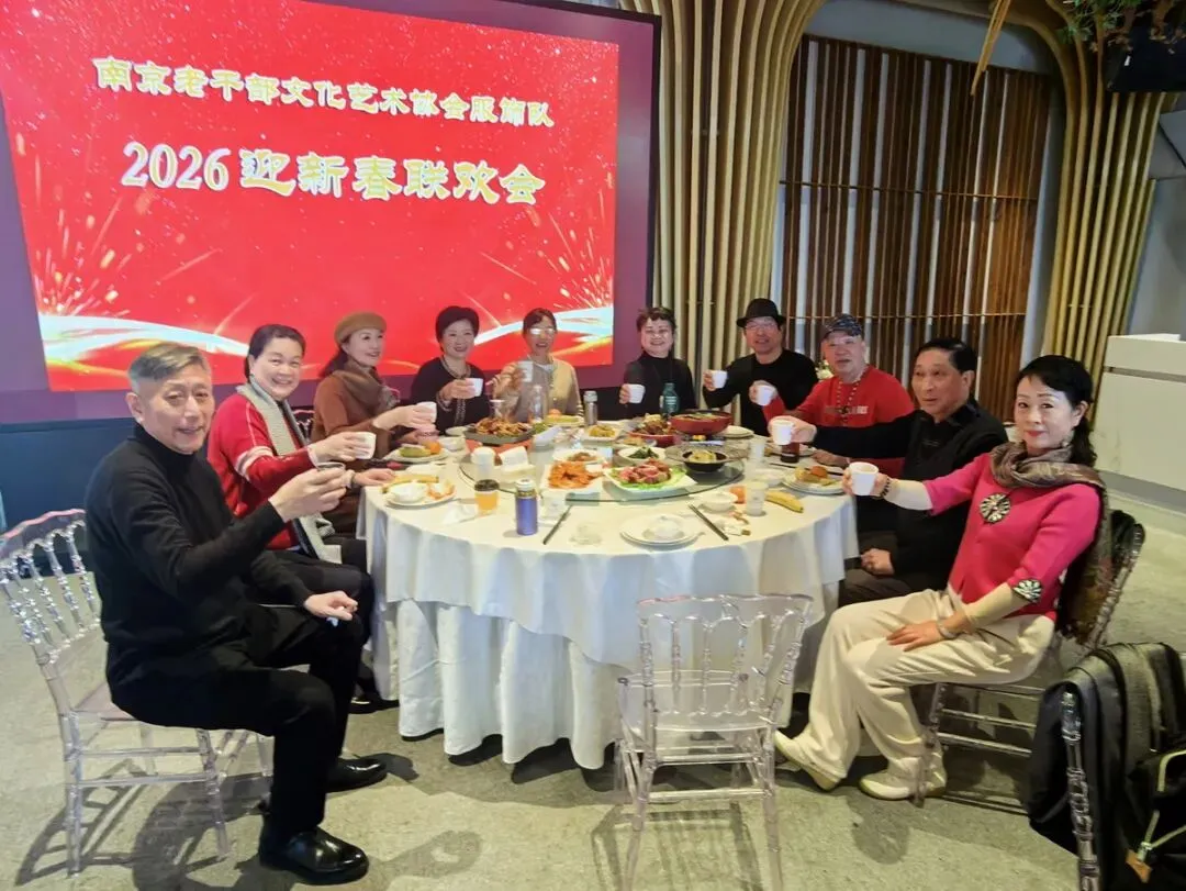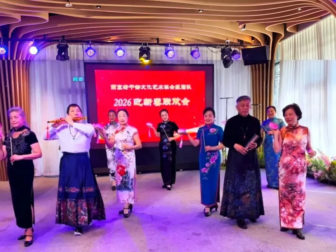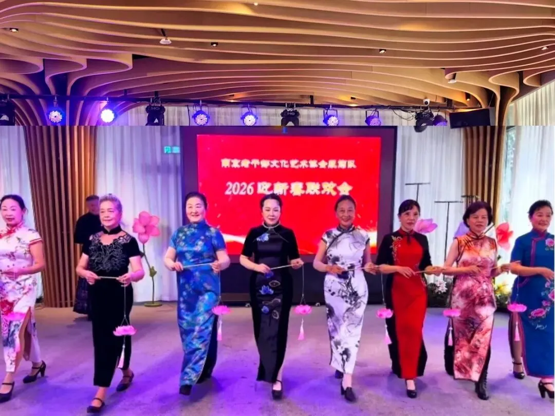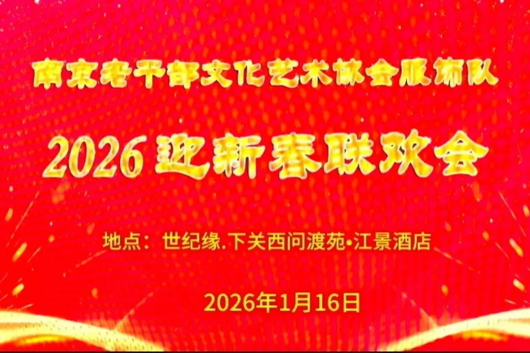 2026年1月16日,南京市老干部文化艺术协会服饰队2026迎新春联谊会在“世纪缘-下关西问渡苑-江景酒店”宴会厅举行。联谊会由朱建成、唐叶主持。会上,服饰队张绥芬队长、杨民、陆薇拉副队长分别讲话,总结服饰队2025年活动所取得的成绩和存在的不足,并提出了2026年努力方向。接着是文艺演出,有歌舞、器乐、服饰走秀、诗朗诵、小品等。服饰队员个个多才多艺,本着自娱自乐精神,演出的节目大多为队员们即兴表演。节目虽小,但非常精彩!联谊会是在全场齐唱《欢乐中国年》的歌声和全体队员舞池内欢乐共舞中圆满结束!联谊会结束后,我们在宴会大厅共进午餐。大家欢聚一堂,谈笑风生,频频举杯共祝新春快乐!整个活动喜庆而温馨,每个人都沉浸在欢乐之中,共同度过了愉快的一天!