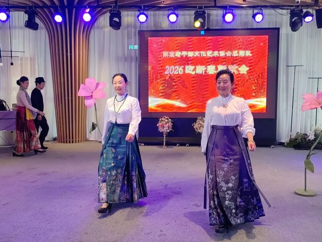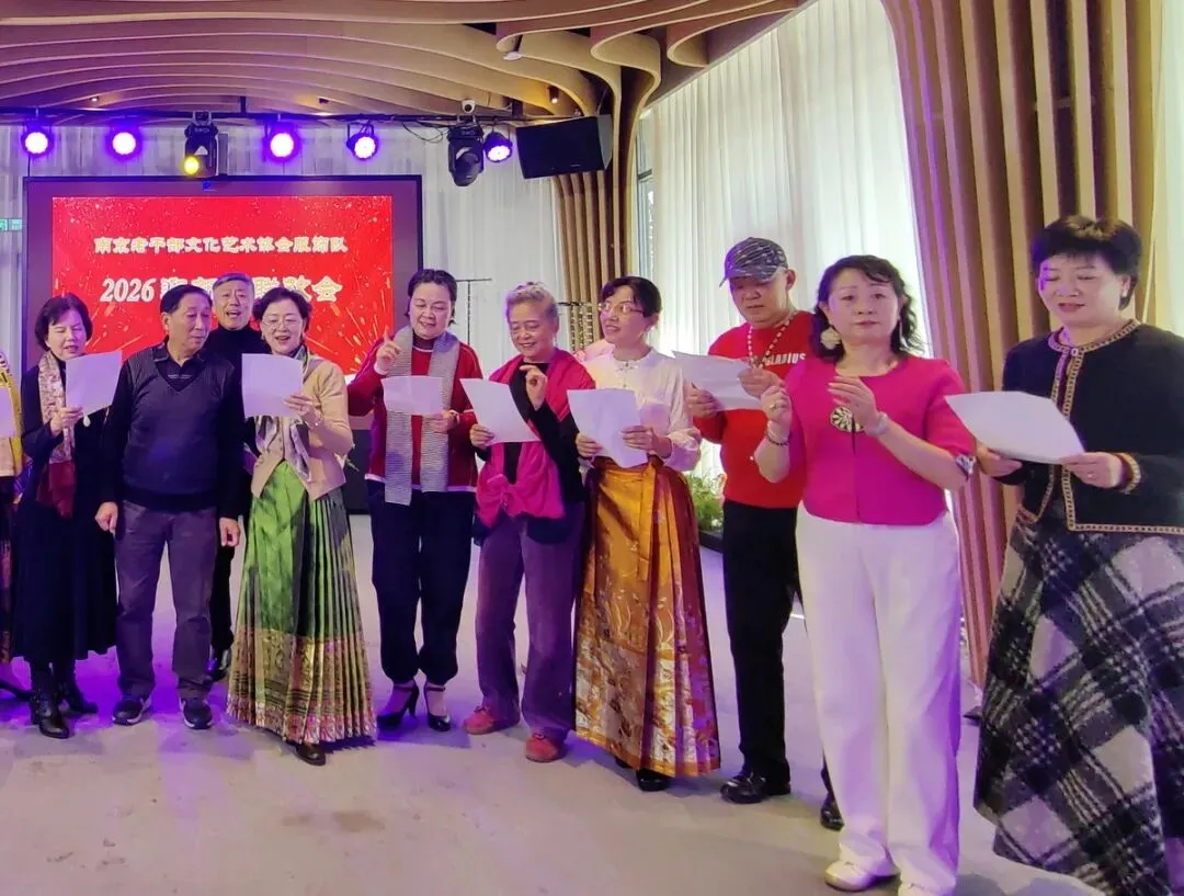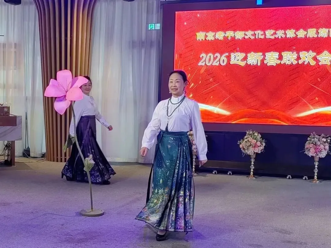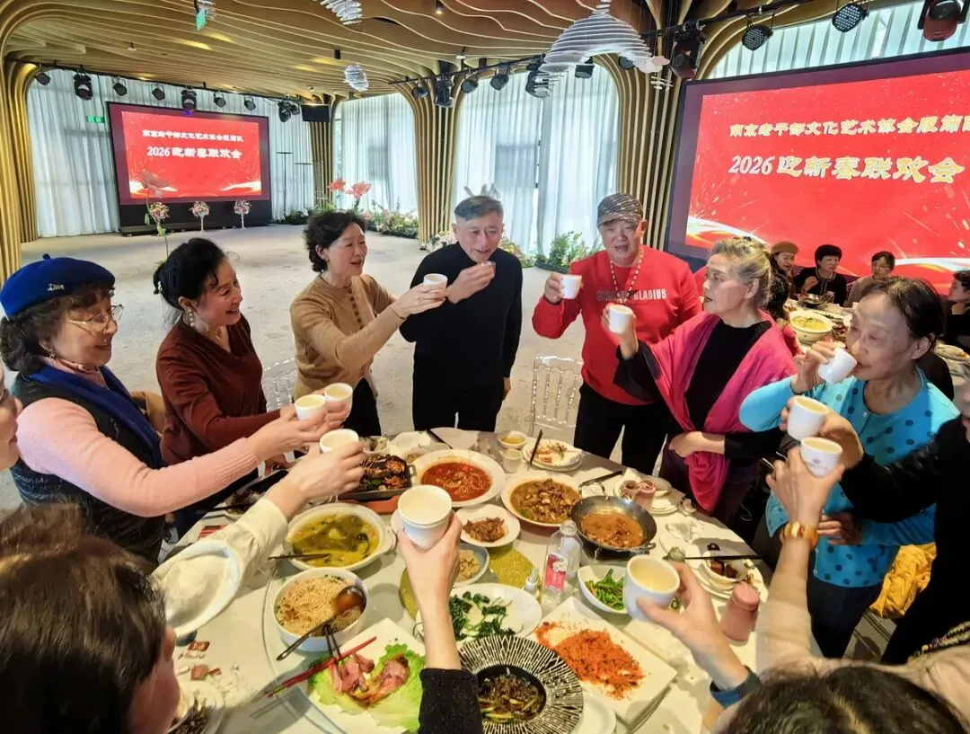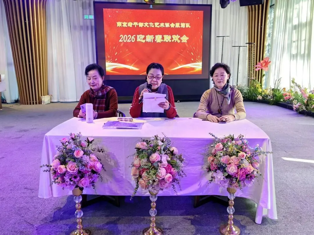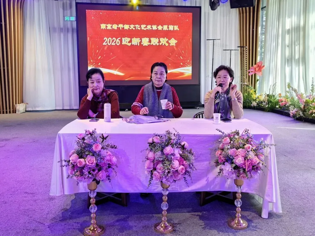 2026年1月16日,南京市老干部文化艺术协会服饰队2026迎新春联谊会在“世纪缘-下关西问渡苑-江景酒店”宴会厅举行。联谊会由朱建成、唐叶主持。会上,服饰队张绥芬队长、杨民、陆薇拉副队长分别讲话,总结服饰队2025年活动所取得的成绩和存在的不足,并提出了2026年努力方向。接着是文艺演出,有歌舞、器乐、服饰走秀、诗朗诵、小品等。服饰队员个个多才多艺,本着自娱自乐精神,演出的节目大多为队员们即兴表演。节目虽小,但非常精彩!联谊会是在全场齐唱《欢乐中国年》的歌声和全体队员舞池内欢乐共舞中圆满结束!联谊会结束后,我们在宴会大厅共进午餐。大家欢聚一堂,谈笑风生,频频举杯共祝新春快乐!整个活动喜庆而温馨,每个人都沉浸在欢乐之中,共同度过了愉快的一天!