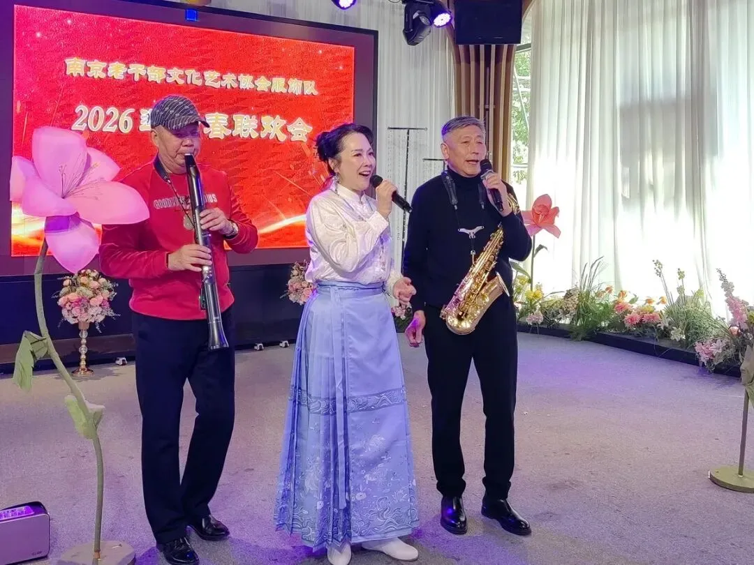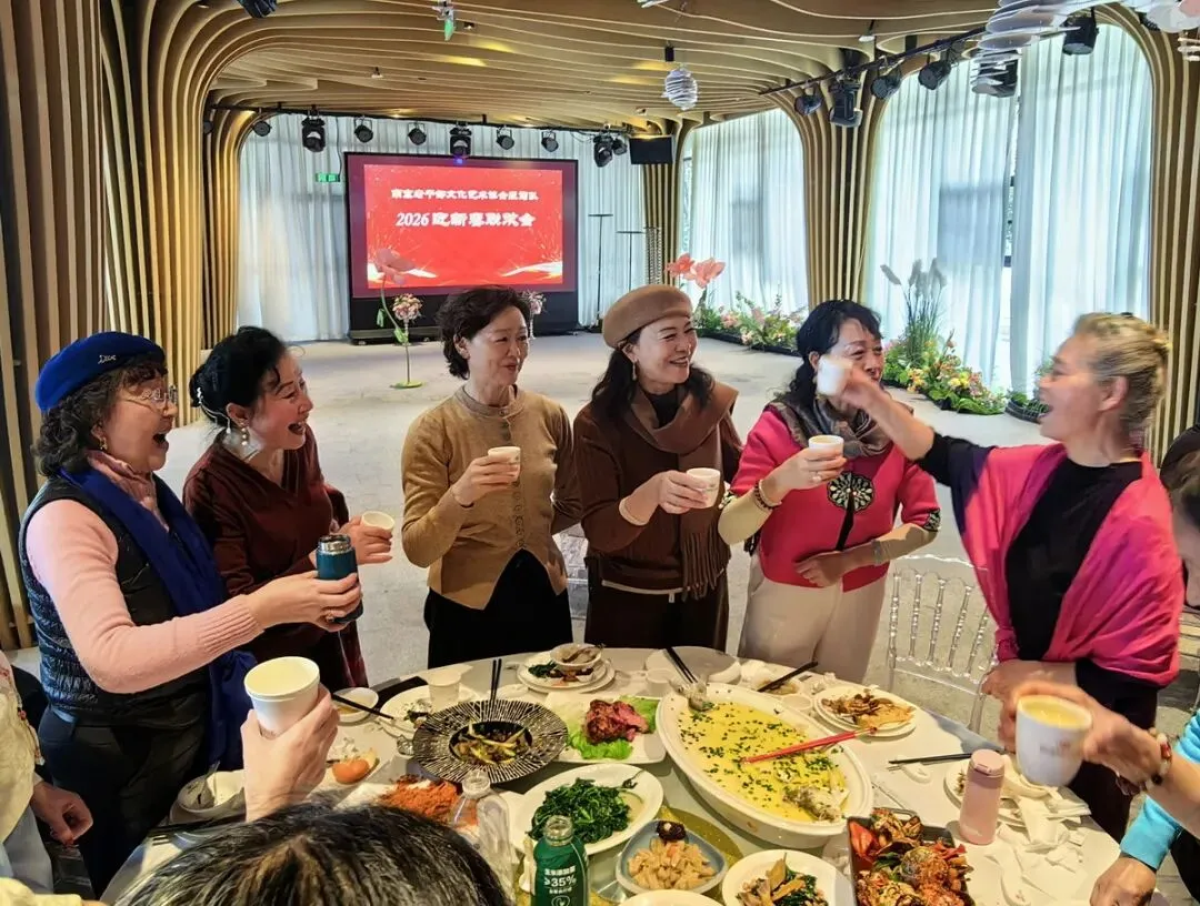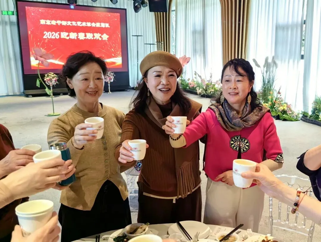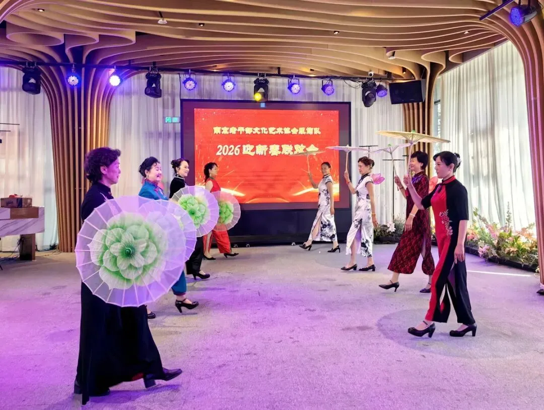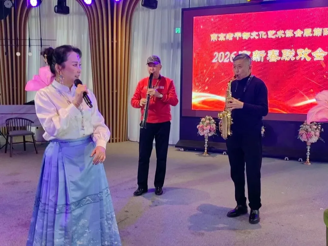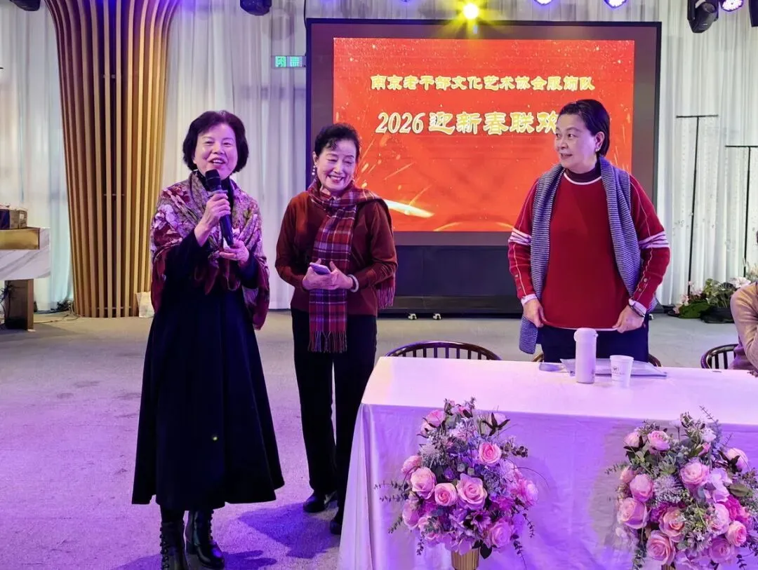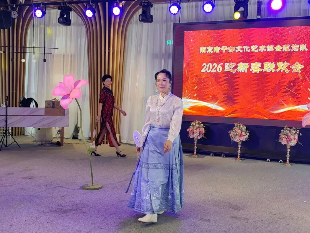 2026年1月16日,南京市老干部文化艺术协会服饰队2026迎新春联谊会在“世纪缘-下关西问渡苑-江景酒店”宴会厅举行。联谊会由朱建成、唐叶主持。会上,服饰队张绥芬队长、杨民、陆薇拉副队长分别讲话,总结服饰队2025年活动所取得的成绩和存在的不足,并提出了2026年努力方向。接着是文艺演出,有歌舞、器乐、服饰走秀、诗朗诵、小品等。服饰队员个个多才多艺,本着自娱自乐精神,演出的节目大多为队员们即兴表演。节目虽小,但非常精彩!联谊会是在全场齐唱《欢乐中国年》的歌声和全体队员舞池内欢乐共舞中圆满结束!联谊会结束后,我们在宴会大厅共进午餐。大家欢聚一堂,谈笑风生,频频举杯共祝新春快乐!整个活动喜庆而温馨,每个人都沉浸在欢乐之中,共同度过了愉快的一天!