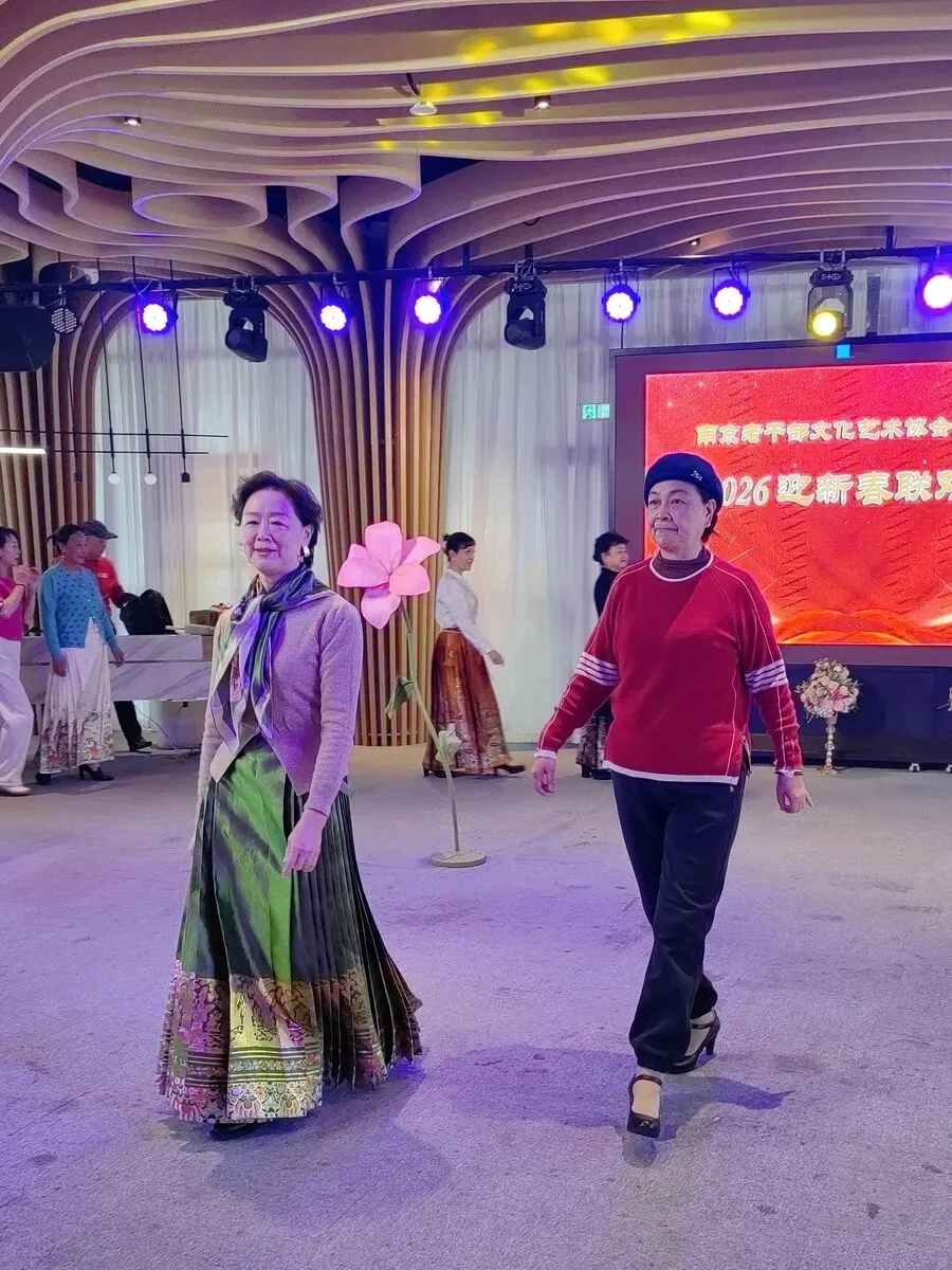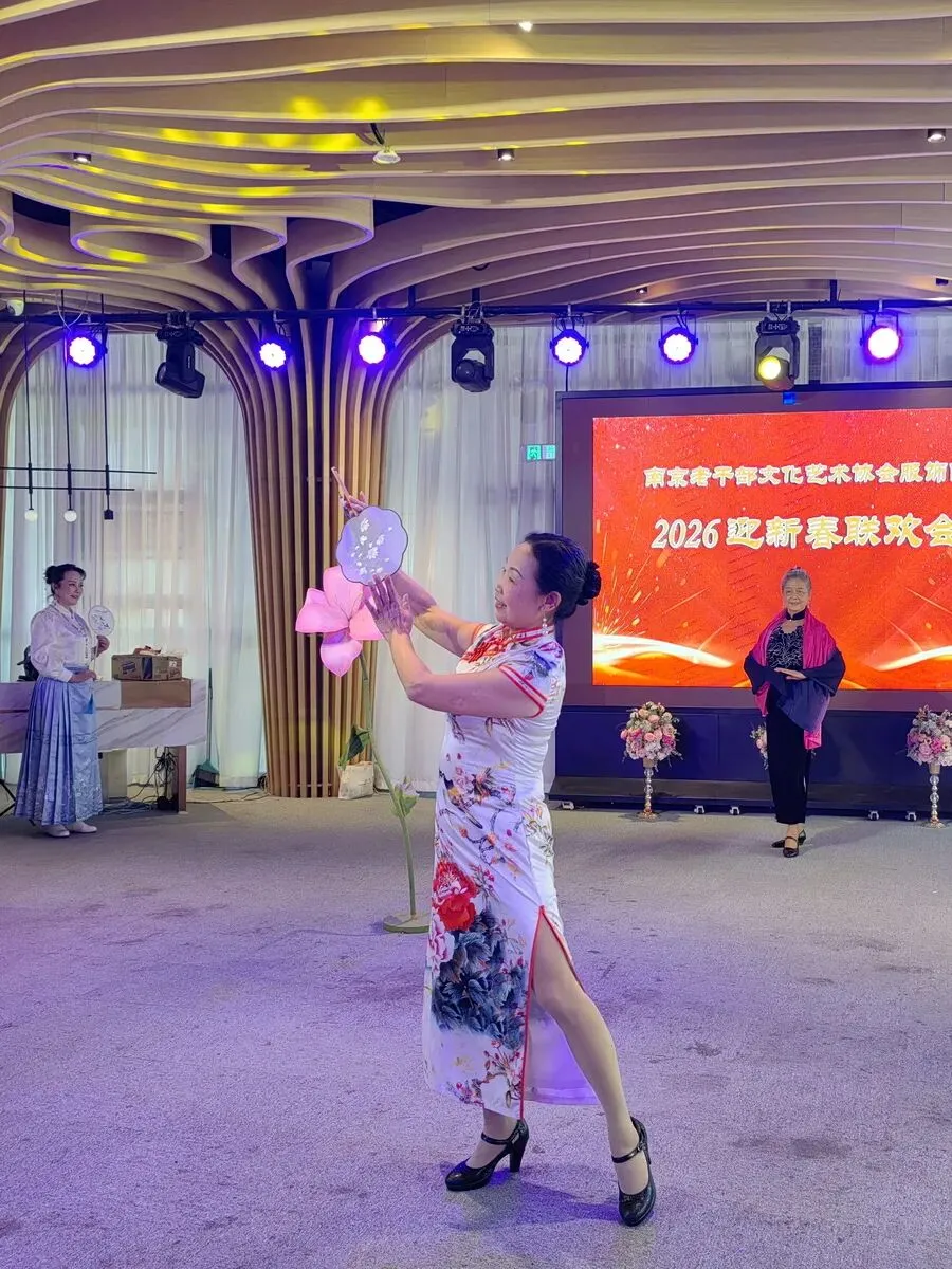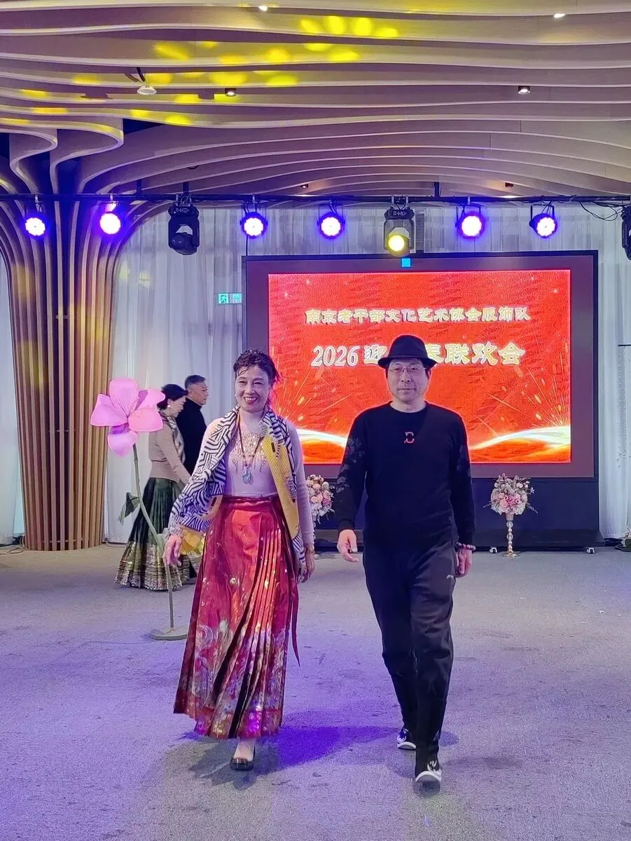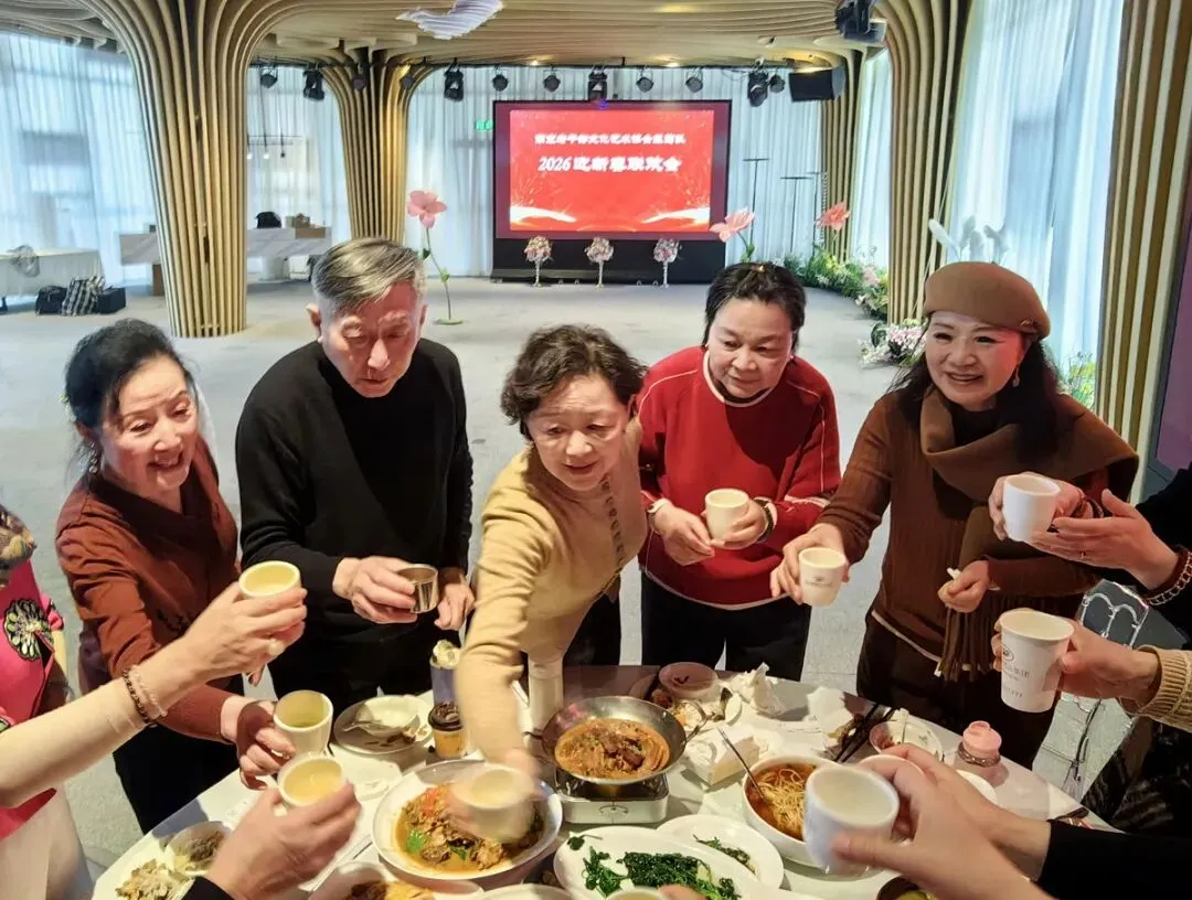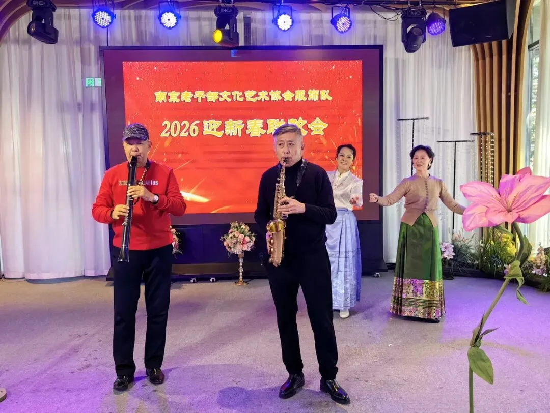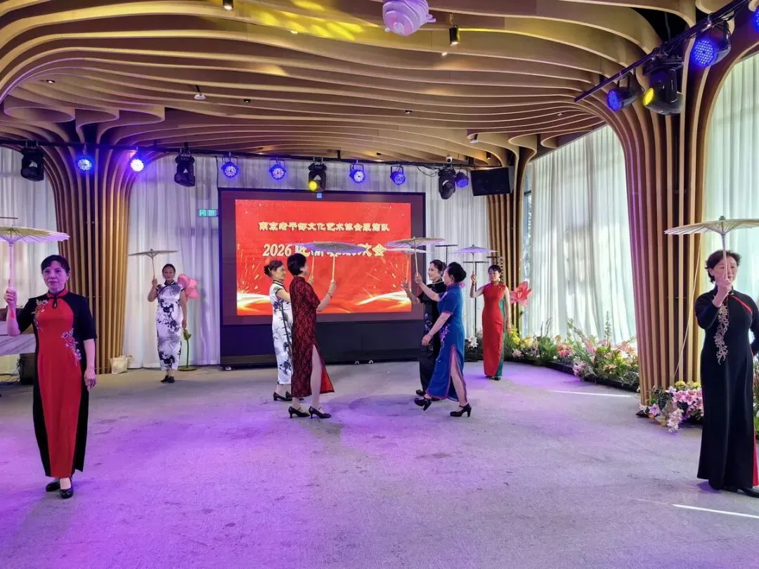 2026年1月16日,南京市老干部文化艺术协会服饰队2026迎新春联谊会在“世纪缘-下关西问渡苑-江景酒店”宴会厅举行。联谊会由朱建成、唐叶主持。会上,服饰队张绥芬队长、杨民、陆薇拉副队长分别讲话,总结服饰队2025年活动所取得的成绩和存在的不足,并提出了2026年努力方向。接着是文艺演出,有歌舞、器乐、服饰走秀、诗朗诵、小品等。服饰队员个个多才多艺,本着自娱自乐精神,演出的节目大多为队员们即兴表演。节目虽小,但非常精彩!联谊会是在全场齐唱《欢乐中国年》的歌声和全体队员舞池内欢乐共舞中圆满结束!联谊会结束后,我们在宴会大厅共进午餐。大家欢聚一堂,谈笑风生,频频举杯共祝新春快乐!整个活动喜庆而温馨,每个人都沉浸在欢乐之中,共同度过了愉快的一天!