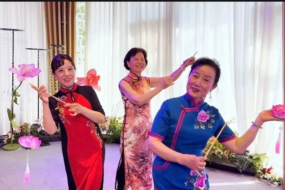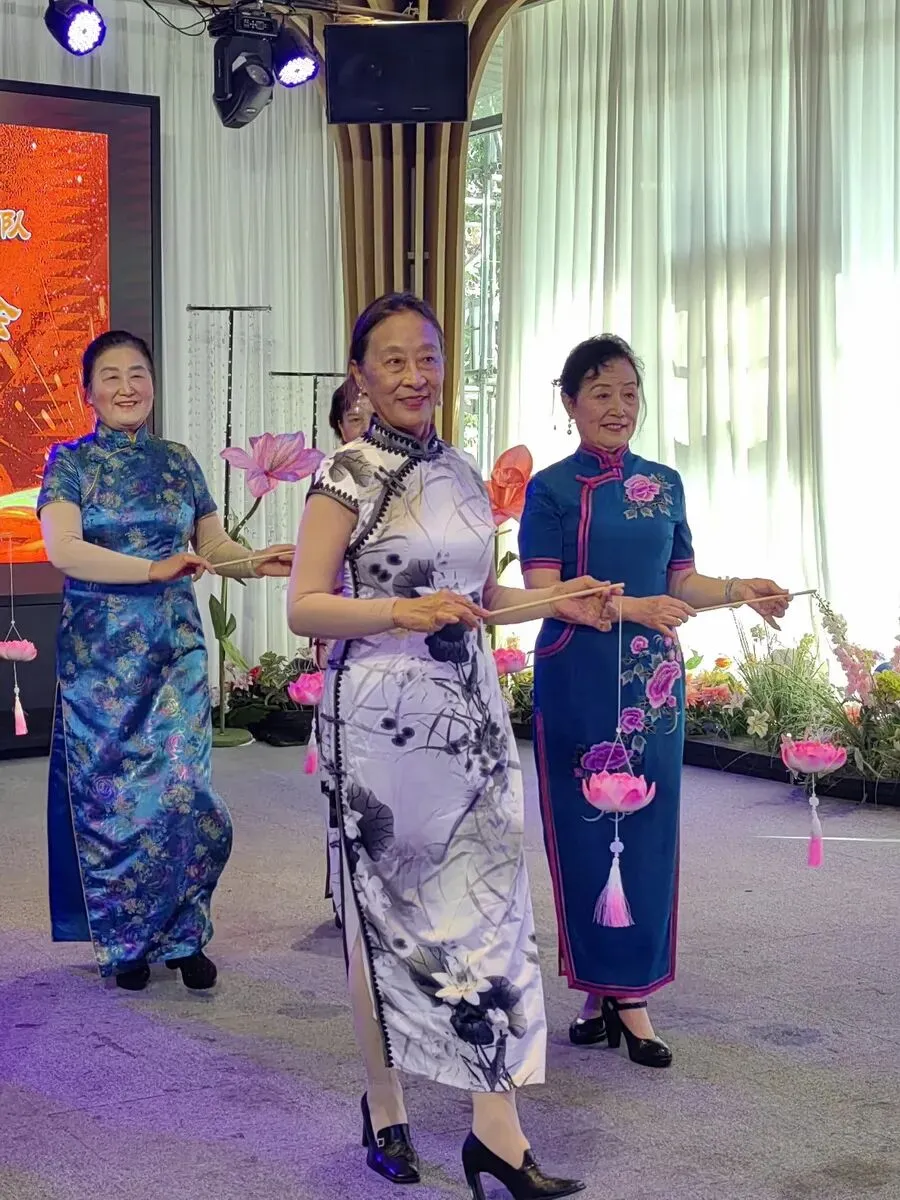 队员们表演的旗袍秀《荷塘流水》: