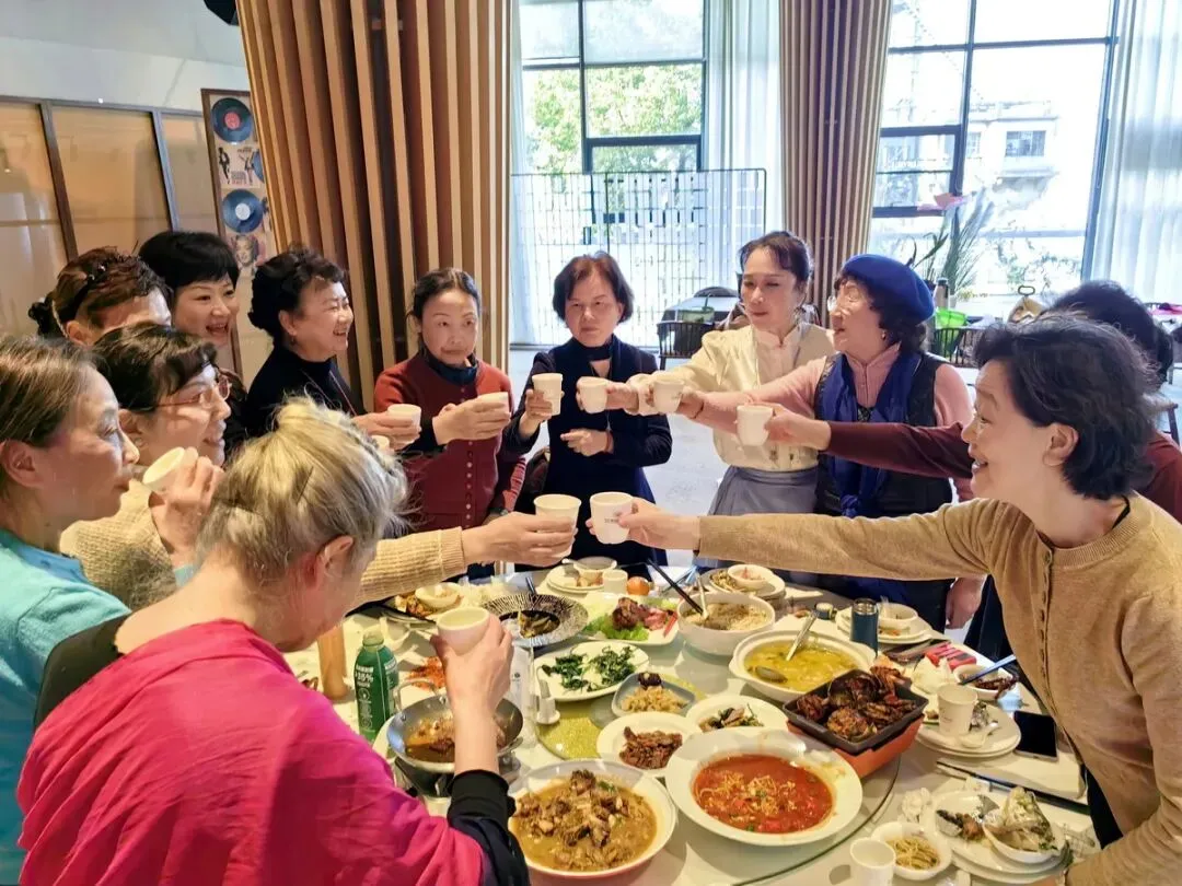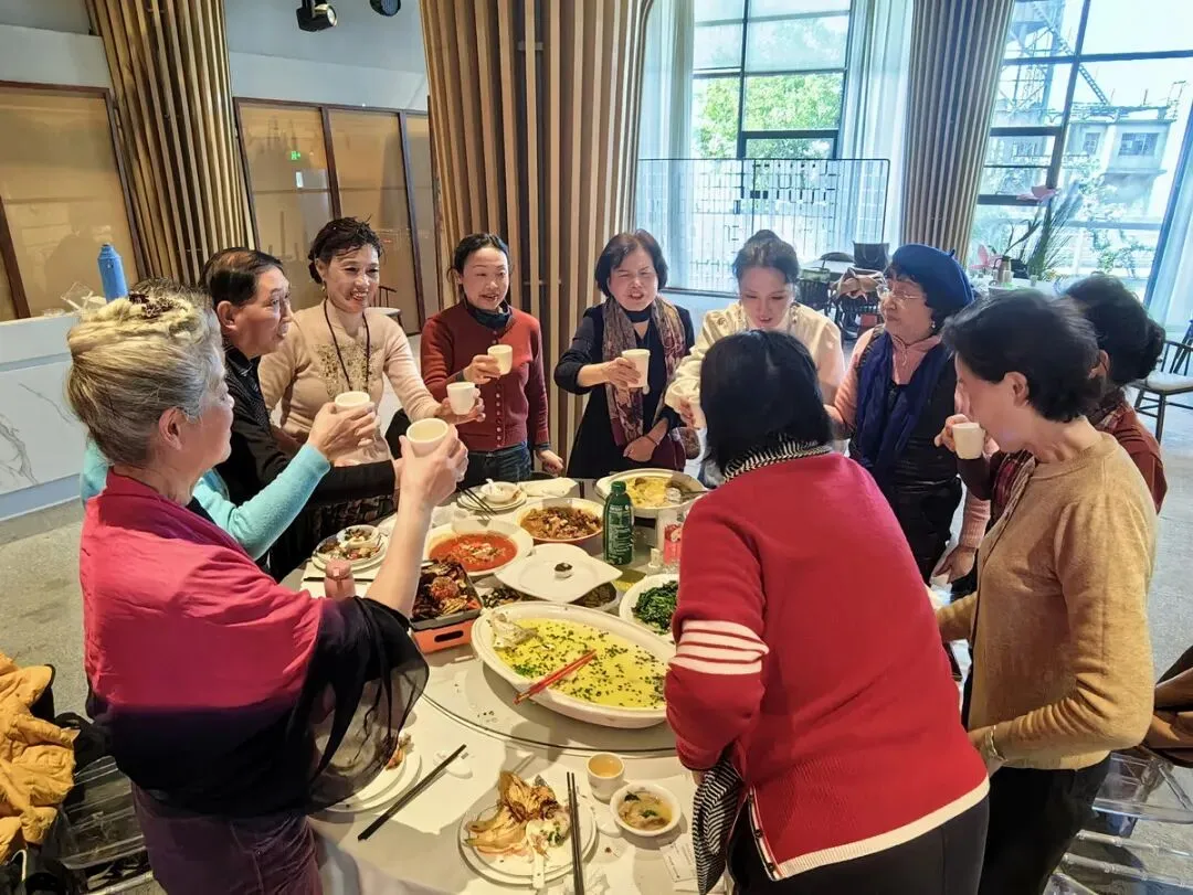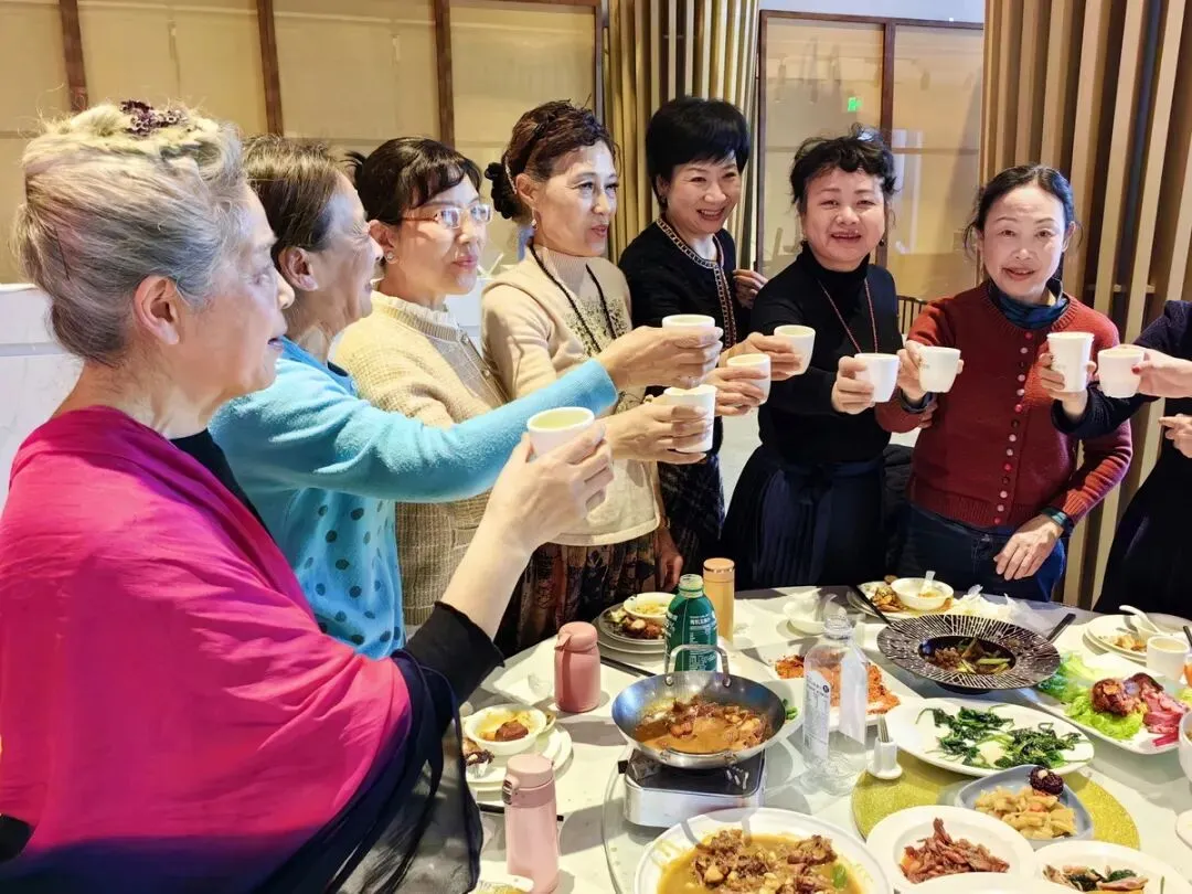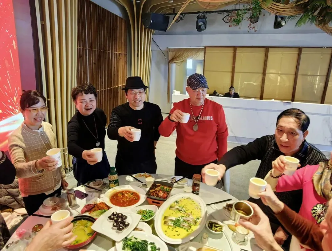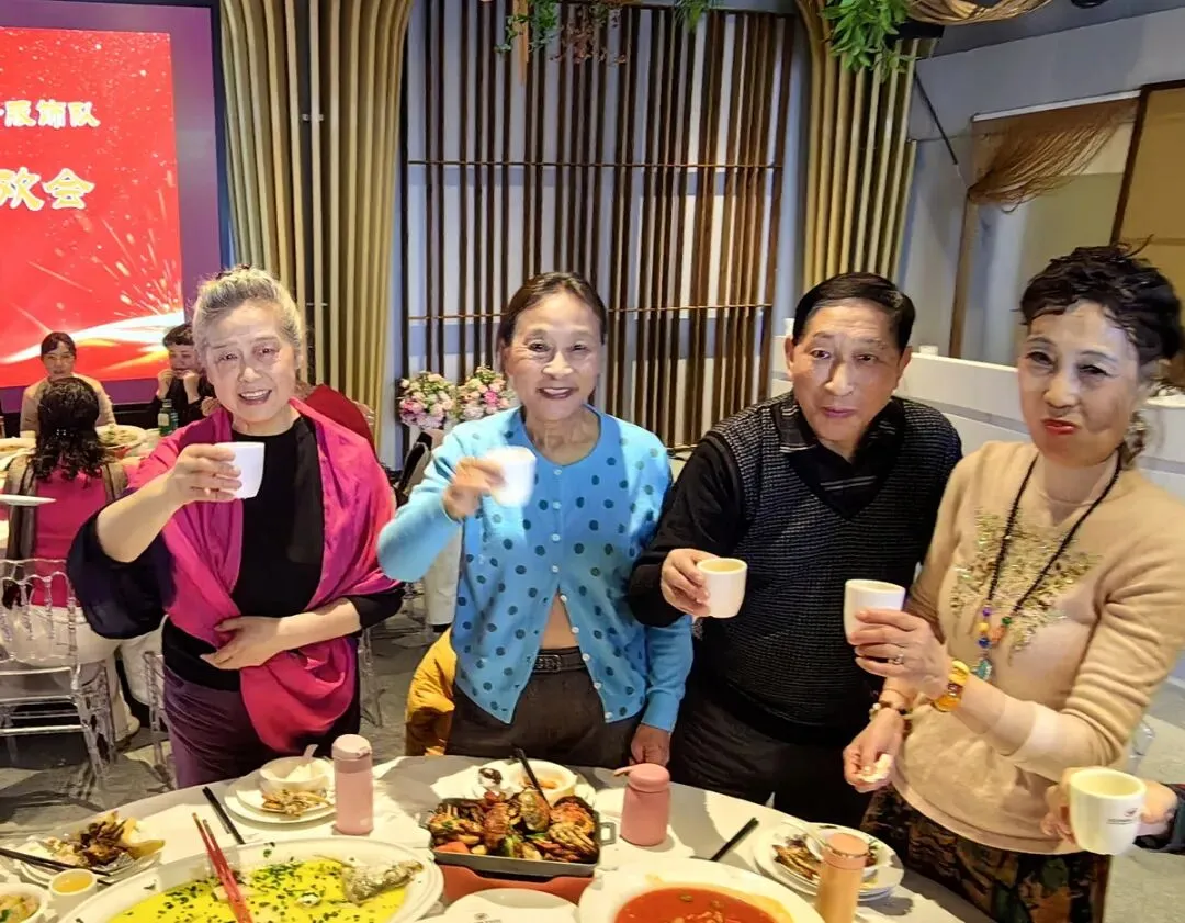 联谊会结束后,我们在宴会大厅共进午餐。大家欢聚一堂,谈笑风生,频频举杯共祝新春快乐!