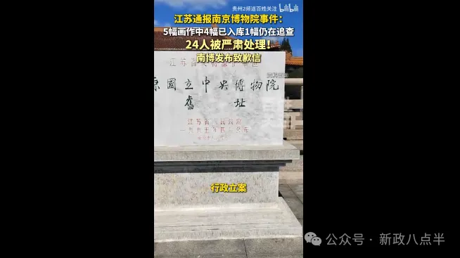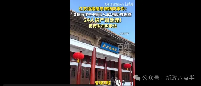 此事件暴露出南博过去一段时间制度缺失、管理混乱,尤其是受赠物品管理制度规范不严格,政策制度执行不力,少数干部职工纪律规矩和法治意识淡薄,造成国有资产流失,损害了国有博物馆公信力,教训极其深刻。