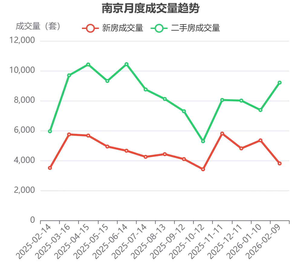 截至2026年2月9日的一个月里,南京总共卖出了13021套房子。这个数字比前一个月微增了2.3%,市场大盘算得上平稳。