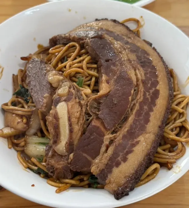 这家店的三鲜炒面非常受欢迎,尤其是“大肉炒面”。炖得软烂的肉块配上面条,味道浓郁,炒面中混合了卤汁,香味扑鼻。尽管价格较高,但相对于份量和味道来说,还是值得尝试的。虽然这家店的炒面锅气稍逊于南湖杨记,但整体来说仍然是一家非常值得光顾的面馆。