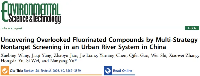 开发一种整合多种策略的非靶向筛查框架,基于包含 7096 种含氟化合物的高分辨 MS/MS 谱库,实现对城市河流中已知和未知含氟化合物的全面识别;以浏阳河(典型城市流域)为研究对象,揭示含氟化合物的时空分布特征、来源驱动因素,发掘此前未被报道的含氟化合物,填补现有监测的盲区。研究方法: