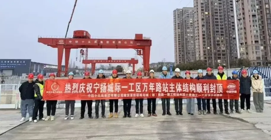 2月7日,随着最后一块顶板混凝土浇筑完成,万年路站主体结构顺利封顶。作为宁扬城际跨江入扬的首座车站,该站是全线地质条件最复杂、基坑埋深最深、结构跨度最大的核心站点,承担着跨江隧道大盾构接收的重要功能,此次封顶标志着车站建设正式转入盾构施工阶段,为后续跨江大盾构接收筑牢基础。