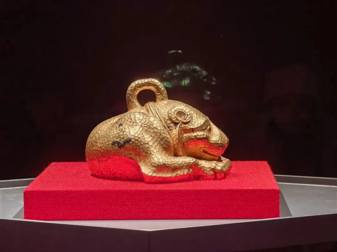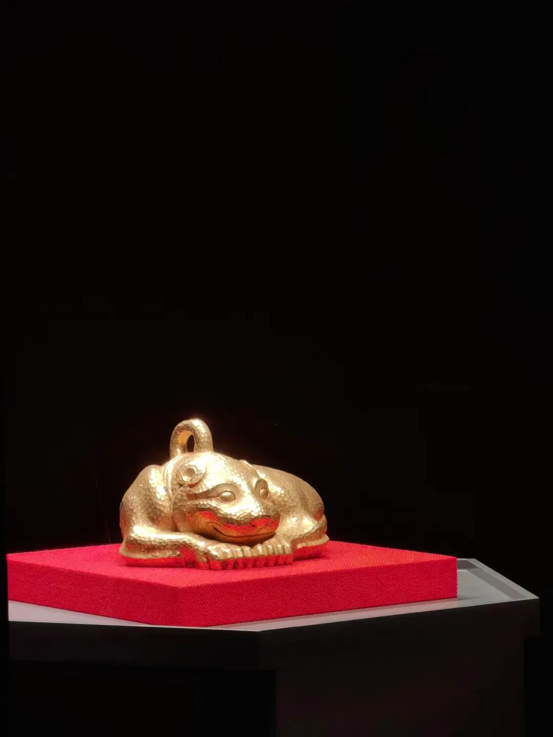 看着不大,但据说重达9.1公斤,1982年出土于江苏省盱眙县,是迄今发现最重的古代黄金器物。