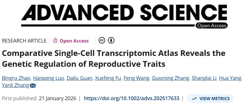 近期,南京农业大学动物科技学院、江苏省家畜胚胎工程研究中心肉羊创新团队张艳丽教授课题组在国际知名期刊《Advanced Science》 (IF5=15.6)在线发表题为“Comparative Single-Cell Transcriptomic Atlas Reveals the Genetic Regulation of Reproductive Traits”的原创性研究成果。该研究首次构建了覆盖绵羊生殖与中枢神经系统组织的高分辨率单细胞转录图谱,并与人类对应组织的单细胞转录数据进行系统整合,揭示了哺乳动物繁殖调控的保守性与特异性机制。
