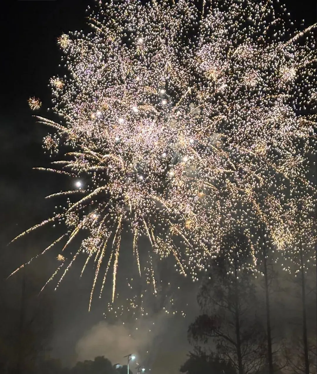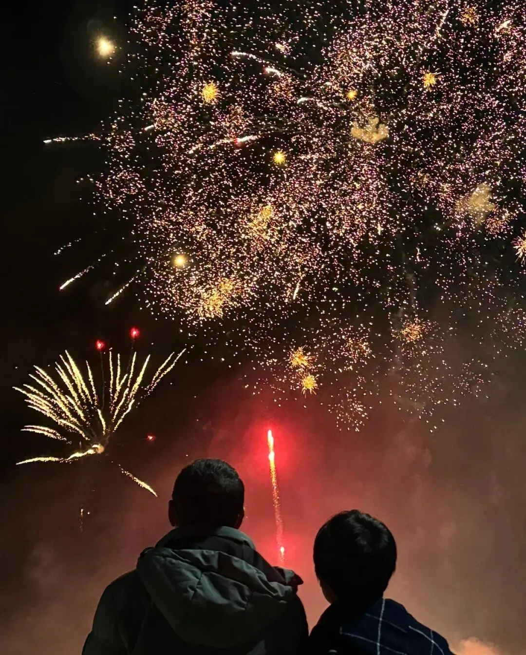 当第一束金光划破夜空,在最高点“砰”然绽放时,人群的欢呼随之响起。
