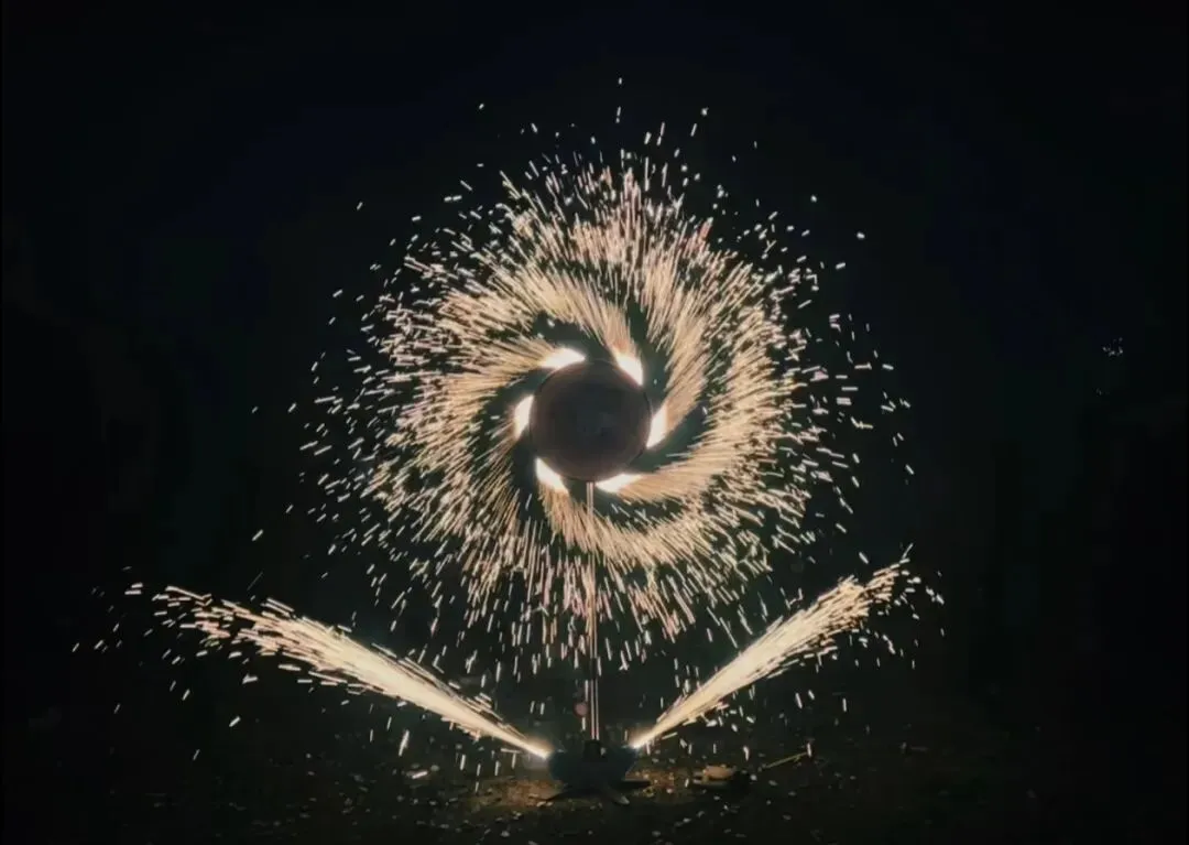 孩子们蹲在地上看“小陀螺”旋转,大人手持“加特林”让火光如瀑(请务必固定燃放,注意安全)。在开阔的田园夜空下,这份热闹是一种被天地包容的“放肆”。