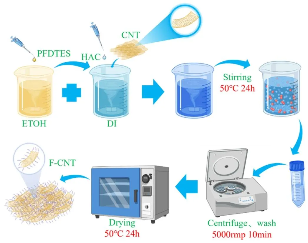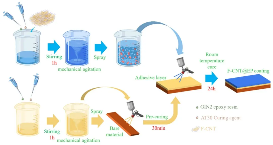 图2. F-CNT@EP 超疏水涂层的制备过程。