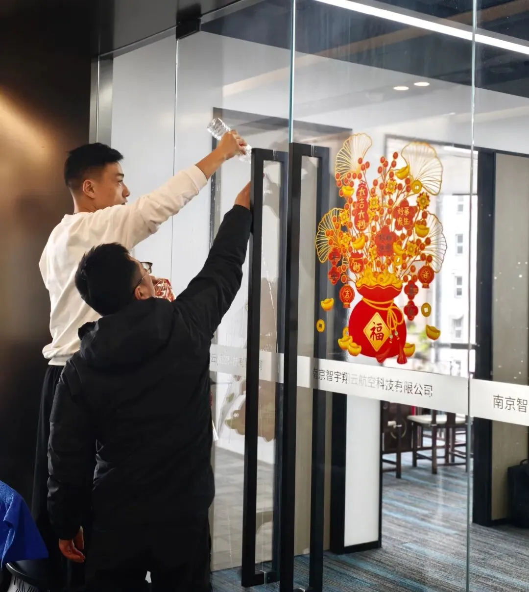 值此 2026 年春节来临之际,南京智宇翔云航空科技有限公司全体员工贴春联、挂福字,让浓浓年味满溢办公空间,也借着这份喜庆,向全体客户致以最诚挚的节日问候与新春祝福!