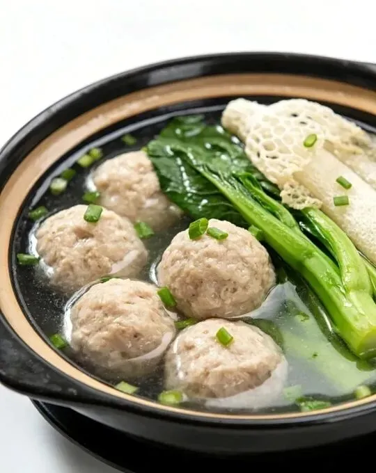 上桌时一人一盅,汤清见底,狮子头洁白如玉。用勺子轻轻一碰就分开,入口即化,肉香与汤汁在口中温柔交融,那种满足感难以言表。