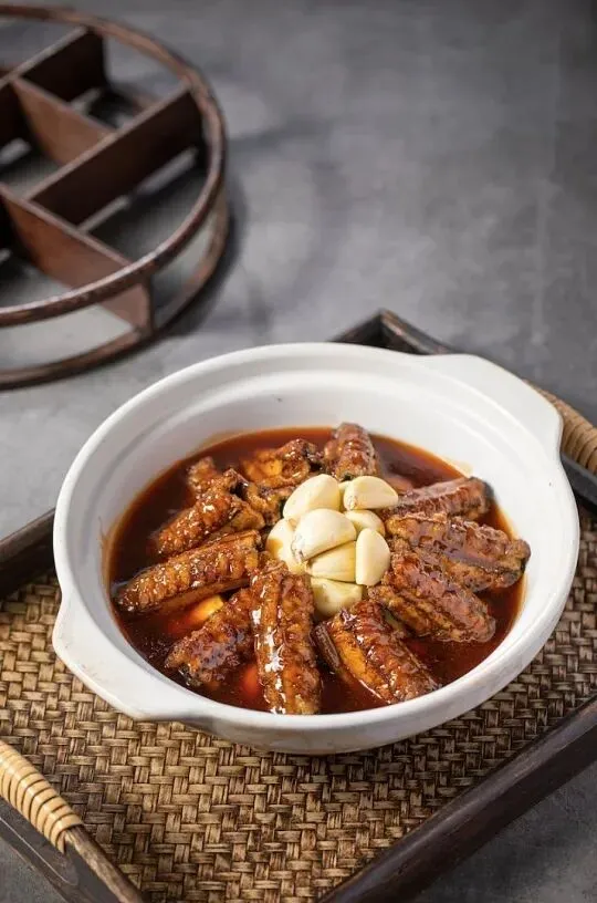 揭开锅盖那一刻,香气扑鼻。鳝段酥烂到用筷子一夹就断,却形状完整;五花肉中的油脂融化在汤里,使汤汁醇厚;蒜瓣早已炖得绵软,吸收了所有精华。